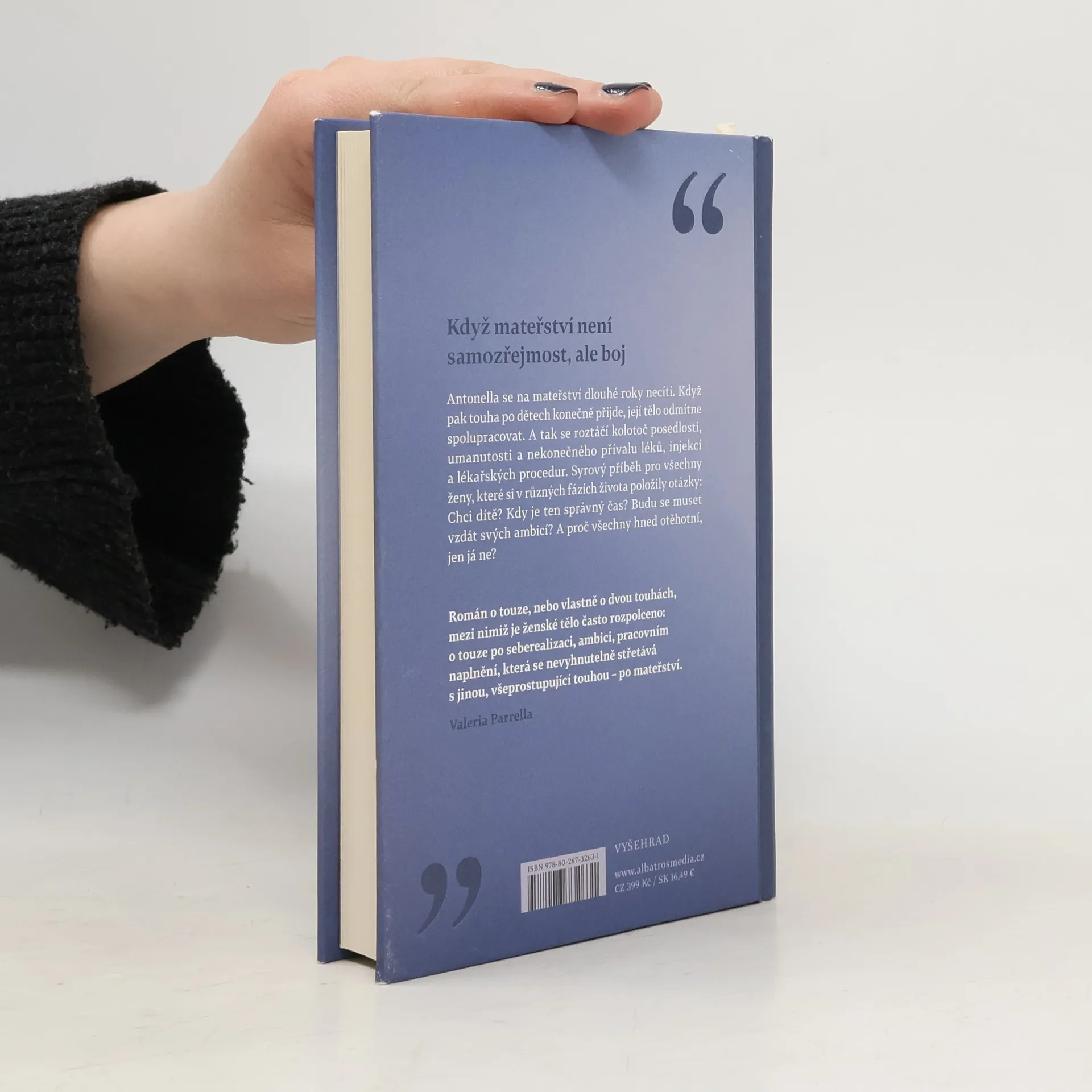 Antonella se na mateřství dlouhé roky necítí. Když pak touha po dětech konečně přijde, její tělo odmítne spolupracovat. A tak se roztáčí kolotoč posedlosti, umanutosti a nekonečného přívalu medikamentů. Syrový příběh pro všechny ženy, které si v různých fázích života položily otázky: Chci dítě? Kdy je ten správný čas? Budu se muset vzdát svých ambicí? A proč všechny hned otěhotní, jen já ne?