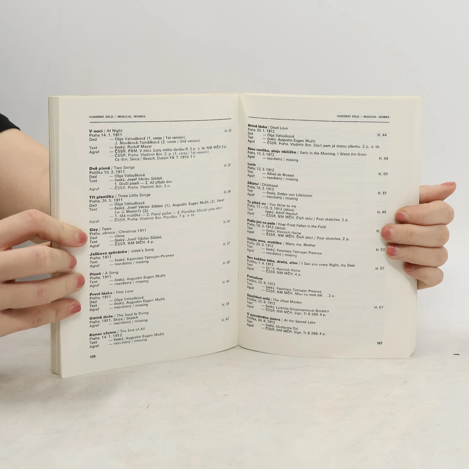 Soupis hudebních a literárních děl skladatele.