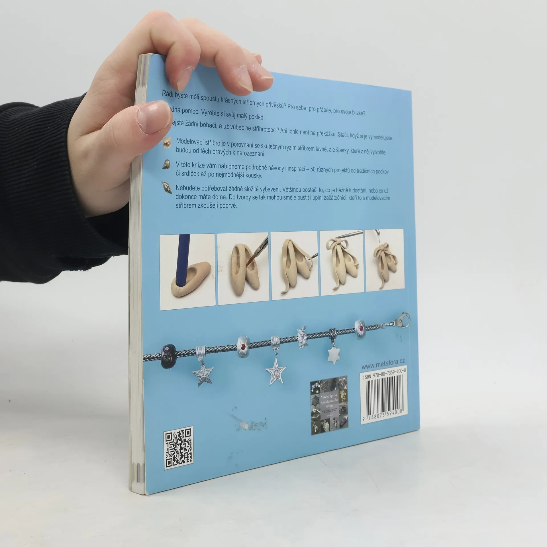 Vyrobte si svůj vlastní stříbrný poklad... Rádi byste měli spoustu krásných stříbrných přívěsků? Pro sebe, pro přátele, pro svoje blízké? Snadná pomoc. Vyrobte si svůj malý poklad. Že nejste žádní boháči, a už vůbec ne stříbrotepci? Ani tohle není na překážku. Stačí, když si je vymodelujete. Modelovací stříbro je v porovnání se skutečným ryzím stříbrem levné, ale šperky, které z něj vytvoříte, budou od těch pravých k nerozeznání. V této knize vám nabídneme podrobné návody i inspiraci – 50 různých projektů od tradičních podkov či srdíček až po nejmódnější kousky. Nebudete potřebovat žádné složité vybavení. Většinou postačí to, co je běžně k dostání, nebo co už dokonce máte doma. Do tvorby se tak mohou směle pustit i úplní začátečníci, kteří to s modelovacím stříbrem zkoušejí poprvé.