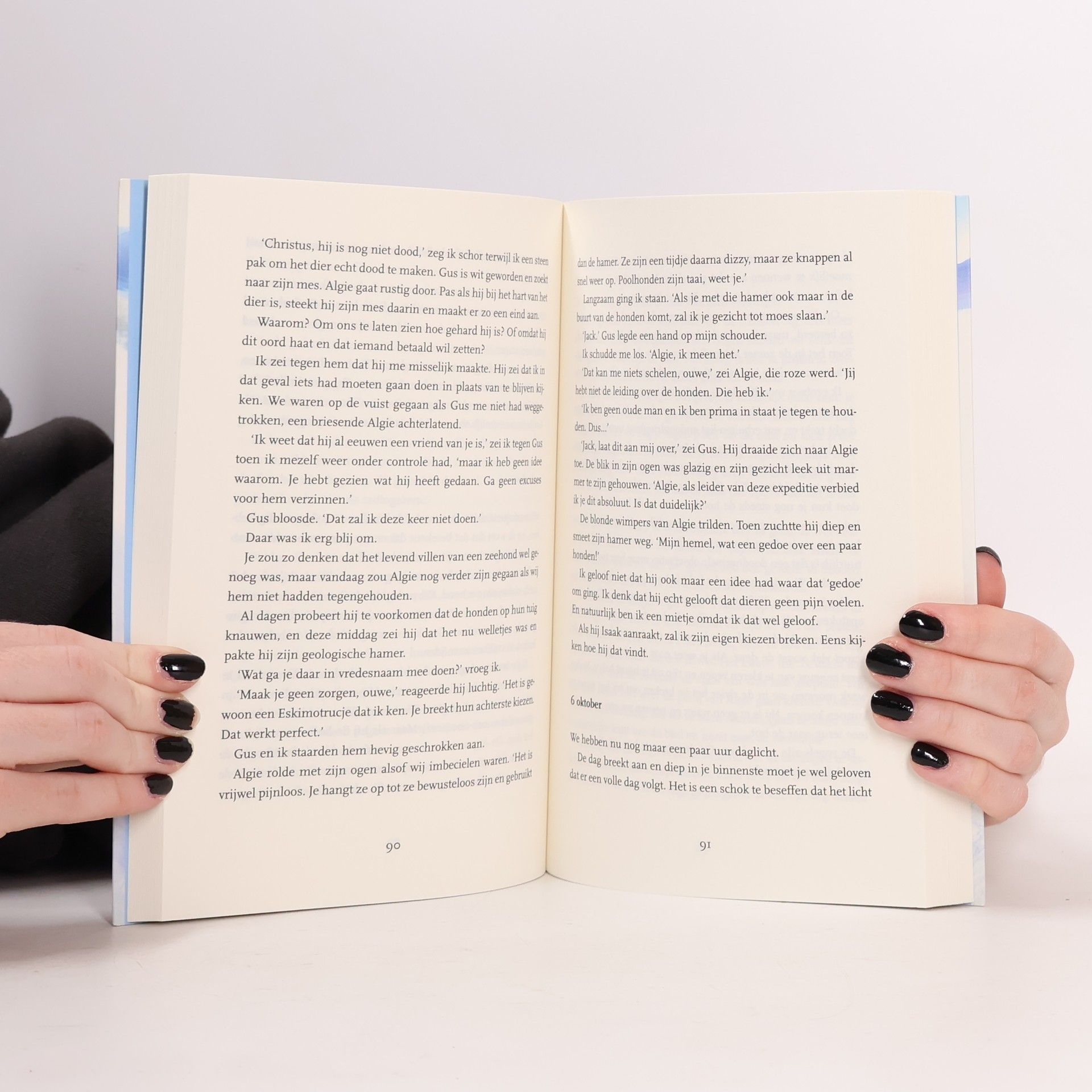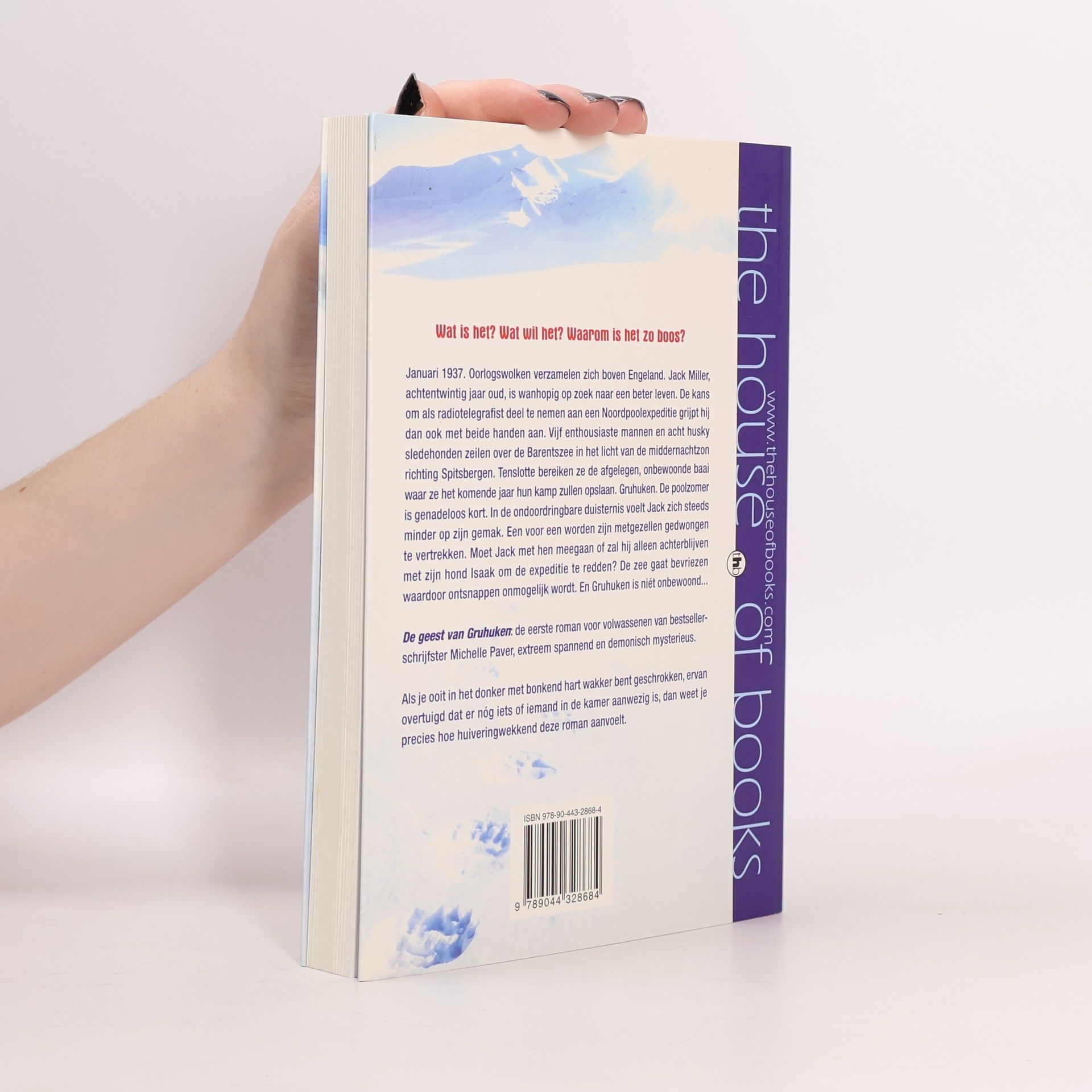 Wat is het? Wat wil het? Waarom is het zo boos? Januari 1937. Oorlogswolken verzamelen zich boven Engeland. Jack Miller, achtentwintig jaar oud, is wanhopig op zoek naar een beter leven. De kans om als radiotelegrafist deel te nemen aan een Noordpoolexpeditie grijpt hij dan ook met beide handen aan. Vijf enthousiaste mannen en acht sledehonden zeilen over de Barentszee in het licht van de middernachtzon richting Spitsbergen. Tenslotte bereiken ze de afgelegen, onbewoonde baai waar ze het komende jaar hun kamp zullen opslaan. Gruhuken. De poolzomer is genadeloos kort. In de ondoordringbare duisternis voelt Jack een steeds grotere onrust. Een voor een worden zijn metgezellen gedwongen te vertrekken. Moet Jack met hen meegaan of zal hij alleen achterblijven met zijn hond Isaak om de expeditie te redden? De zee gaat bevriezen waardoor ontsnappen onmogelijk wordt. En Gruhuken blijkt niét onbewoond… Als je ooit in het donker met bonkend hart wakker bent geschrokken, ervan overtuigd dat er iets of iemand in de kamer aanwezig is, dan weet je ongeveer hoe huiveringwekkend deze roman aanvoelt.