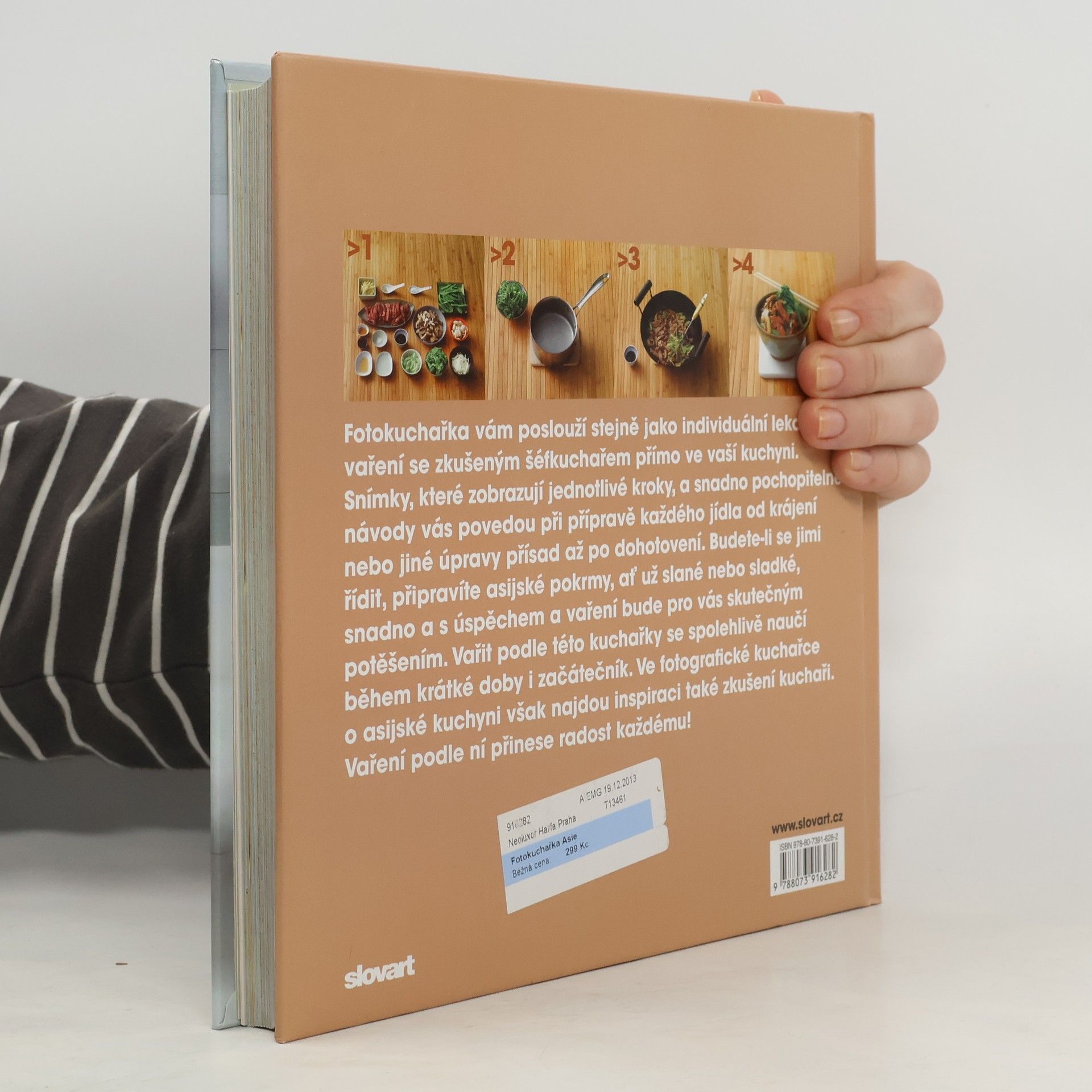 Vařit podle této obrazové kuchařky se spolehlivě naučí během krátké doby i začátečník, inspiraci zde však najdou také zkušení kuchaři. Snímky, které zobrazují jednotlivé kroky postupu, a snadno pochopitelné výstižné návody povedou při přípravě jídel od krájení až po dohotovení. Recepty jsou jasné, přehledné, nádherně ilustrované a připravená jídla budou skutečně asijská. Tak co, máte chuť třeba na polévku miso, grilovaná kachní prsa s jarní cibulkou a sezamem, kuřecí sataj s arašídovou omáčkou, zelené kuřecí karí, taštičky wonton s krabím masem, suši rýži s uzenou makrelou, rýžové nudle s hovězím masem, kokosovou zmrzlinu, mandlové želé s jasmínovým čajem, mango s rýžovými čtverci nebo barmské krupicové řezy?