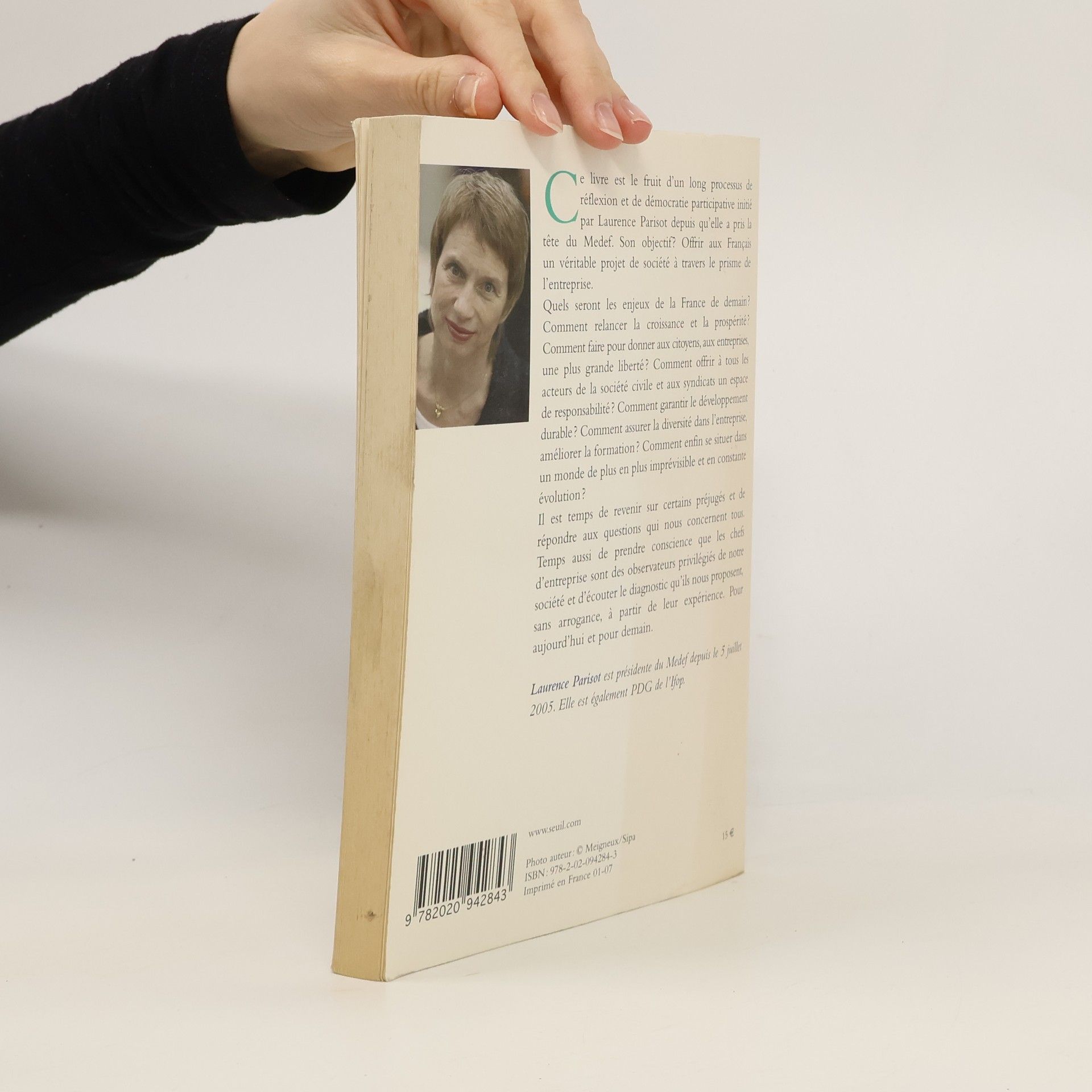 Ce livre est le fruit d'un long processus de réflexion et de démocratie participative initié par Laurence Parisot depuis qu'elle a pris la tête du Medef. Son objectif ? Offrir aux Français un véritable projet de société à travers le prisme de l'entreprise.Quels seront les enjeux de la France de demain ? Comment relancer la croissance et la prospérité ? Comment faire pour donner aux citoyens, aux entreprises, une plus grande liberté ? Comment offrir à tous les acteurs de la société civile et aux syndicats un espace de responsabilité ? Comment garantir le développement durable ? Comment assurer la diversité dans l'entreprise, améliorer la formation ? Comment enfin se situer dans un monde de plus en plus imprévisible et en constante évolution ?Il est temps de revenir sur certains préjugés et de répondre aux questions qui nous concernent tous. Temps aussi de prendre conscience que les chefs d'entreprise sont des observateurs privilégiés de notre société et d'écouter le diagnostic qu'ils nous proposent, sans arrogance, à partir de leur expérience. Pour aujourd'hui et pour demain.Laurence Parisot est présidente du Medef depuis le 5 juillet 2005. Elle est également PDG de l'Ifop.