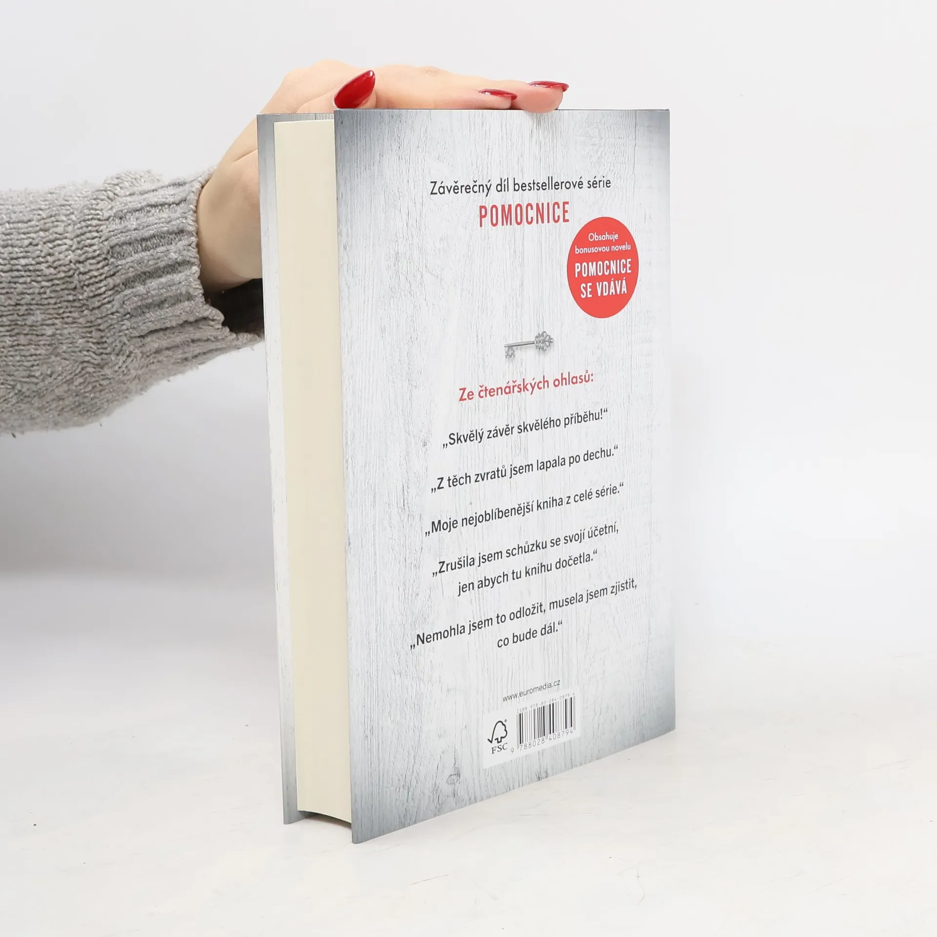 Třetí díl mrazivé série Pomocnice s bonusovou novelou! Má minulost už je dávno za mnou. A já udělám vše pro to, aby to tak zůstalo… Dřív jsem se starala o cizí domy a rodiny, teď mám vlastní krásný domov s velkou zahradou, kde si mohou hrát mé děti. Když nás pozve na večeři nová sousedka, dveře nám otevře její služebná v bílé zástěře a s vlasy staženými do pevného drdolu. Přesně vím, jaké to je být na jejím místě. Jenže její chladný pohled mě děsí… A to není jediná podivná věc v naší ulici. Mám pocit, že nás někdo pozoruje. Můj manžel se pozdě v noci vytrácí z domu. A když potkám ženu odnaproti, je jasné, co se mi snaží říct: Dávejte si pozor na své sousedy.