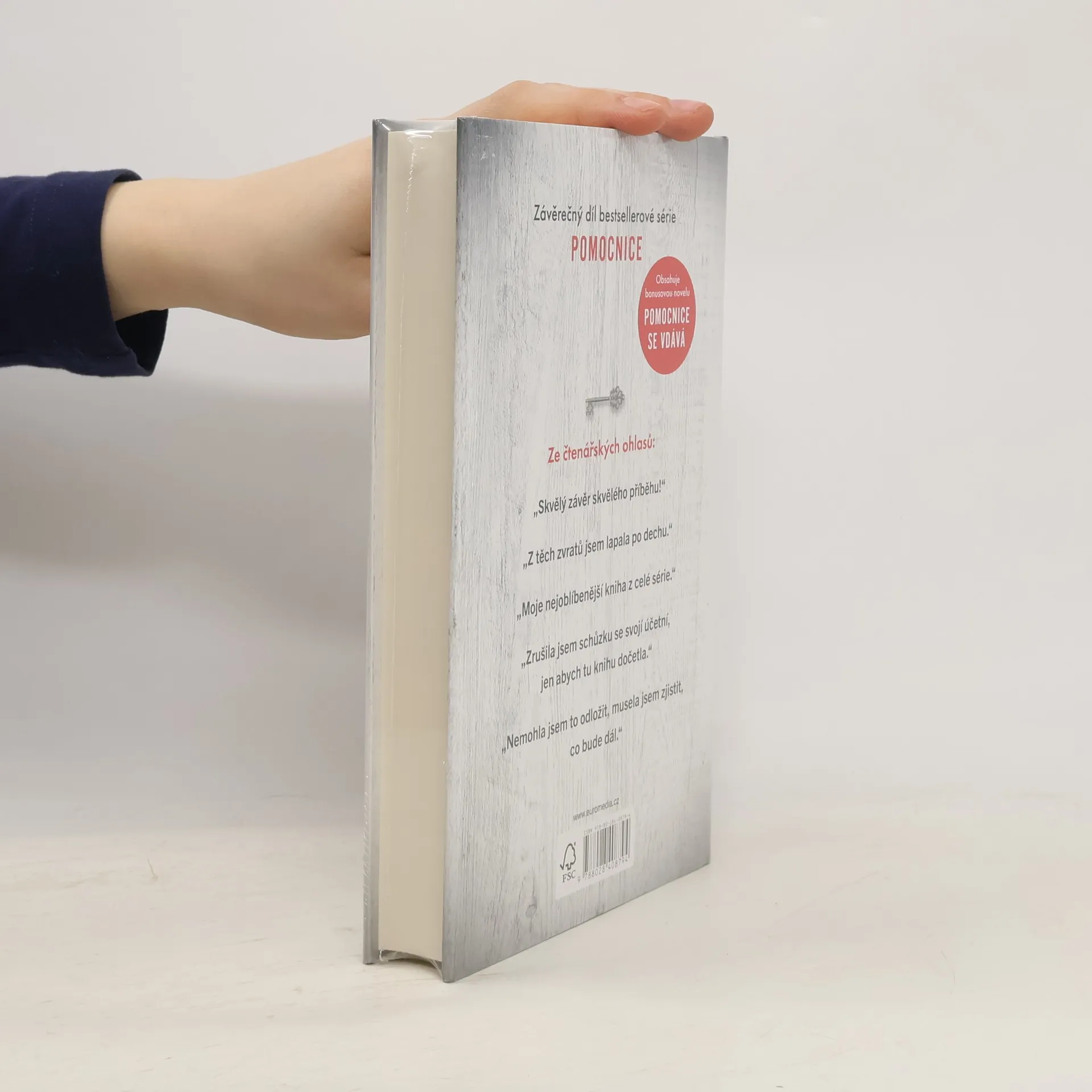 Třetí díl mrazivé série Pomocnice s bonusovou novelou! Má minulost už je dávno za mnou. A já udělám vše pro to, aby to tak zůstalo… Dřív jsem se starala o cizí domy a rodiny, teď mám vlastní krásný domov s velkou zahradou, kde si mohou hrát mé děti. Když nás pozve na večeři nová sousedka, dveře nám otevře její služebná v bílé zástěře a s vlasy staženými do pevného drdolu. Přesně vím, jaké to je být na jejím místě. Jenže její chladný pohled mě děsí… A to není jediná podivná věc v naší ulici. Mám pocit, že nás někdo pozoruje. Můj manžel se pozdě v noci vytrácí z domu. A když potkám ženu odnaproti, je jasné, co se mi snaží říct: Dávejte si pozor na své sousedy.