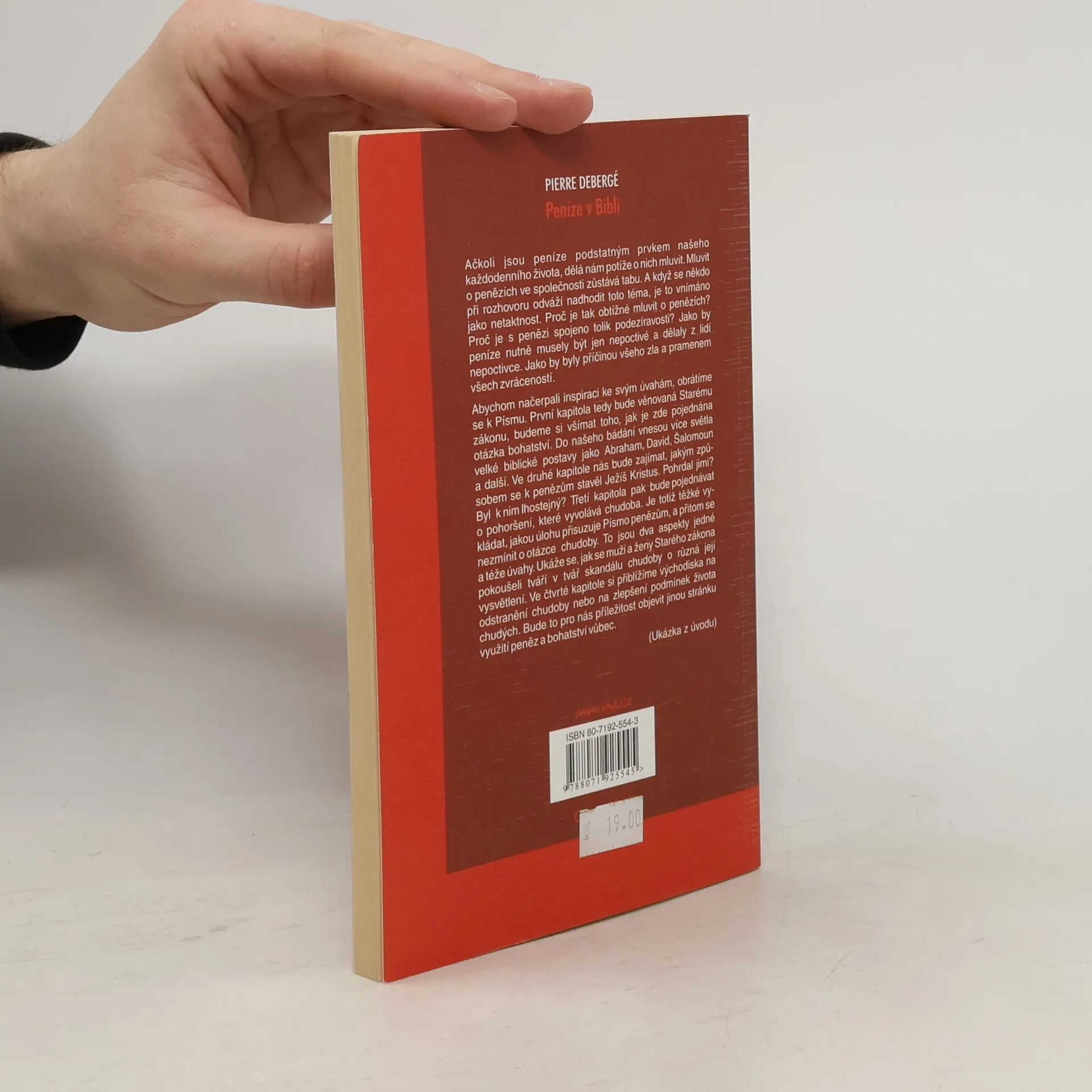 Tato kniha je věnována penězům a našemu vztahu k nim. Bible je zde brána jako inspirace a poučení k úvahám, jaké místo v našich životech mají peníze hrát. Při pozorném čtení Písma můžeme totiž zjistit, že nám na mnoha místech poskytuje zajímavé inspirace k řešení tohoto problému. Zdaleka se nejedná jen o Ježíše a jeho evangelijní podobenství, velkou moudrost můžeme čerpat také z knih Starého zákona.