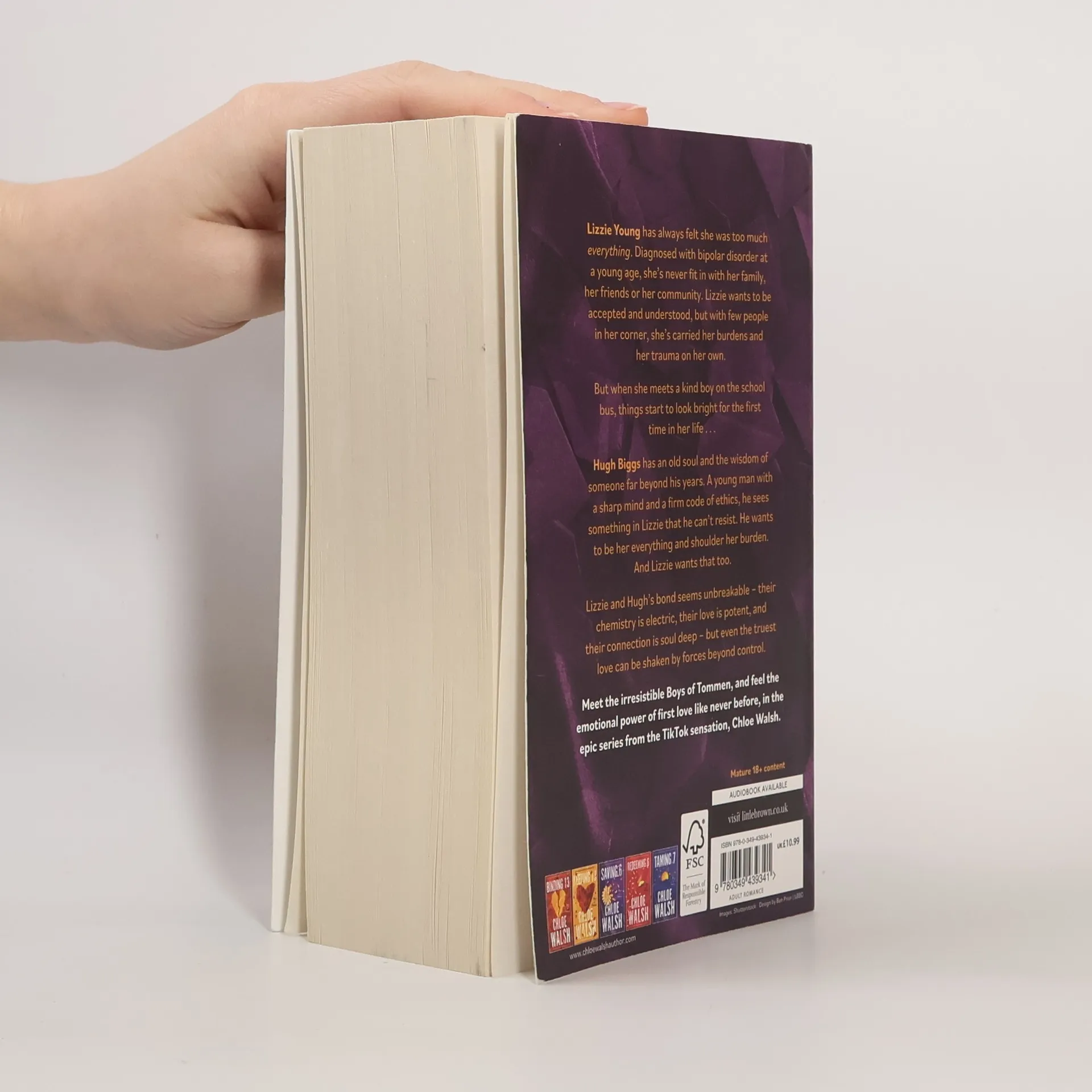 Releasing 10 is an epic and unforgettable love story in the international bestselling and TikTok-phenomenon The Boys of Tommen series, from Chloe Walsh. The power and pain of first love has never been more deeply felt than in Chloe Walsh's extraordinary stories about the irresistible Boys of Tommen, which will give you the ultimate book hangover. ......................... A love that couldn't be broken, except by the truth. Lizzie Young has always felt she was too much everything. Diagnosed with bipolar disorder at a young age, she's never fit in with her family, her friends, her community. Lizzie wants to be accepted and understood, but with few people in her corner, she's carried her burdens and her trauma on her own. But when she meets a kind boy on the school bus, things start to look bright for the first time in her life . . . Hugh Biggs has an old soul and the wisdom of someone far beyond his years. A young man with a sharp mind and a firm code of ethics, he sees something in Lizzie Young that he can't resist. He wants to be her everything and shoulder her burden. And Lizzie wants that too. Lizzie and Hugh's bond seems unbreakable - their chemistry is electric, their love is potent, and their connection is soul deep - but even the truest love can be shaken by forces beyond control. ......................... Want more of The Boys of Tommen? Read all of the series so far: Binding 13 Keeping 13 Saving 6 Redeeming 6 Taming 7