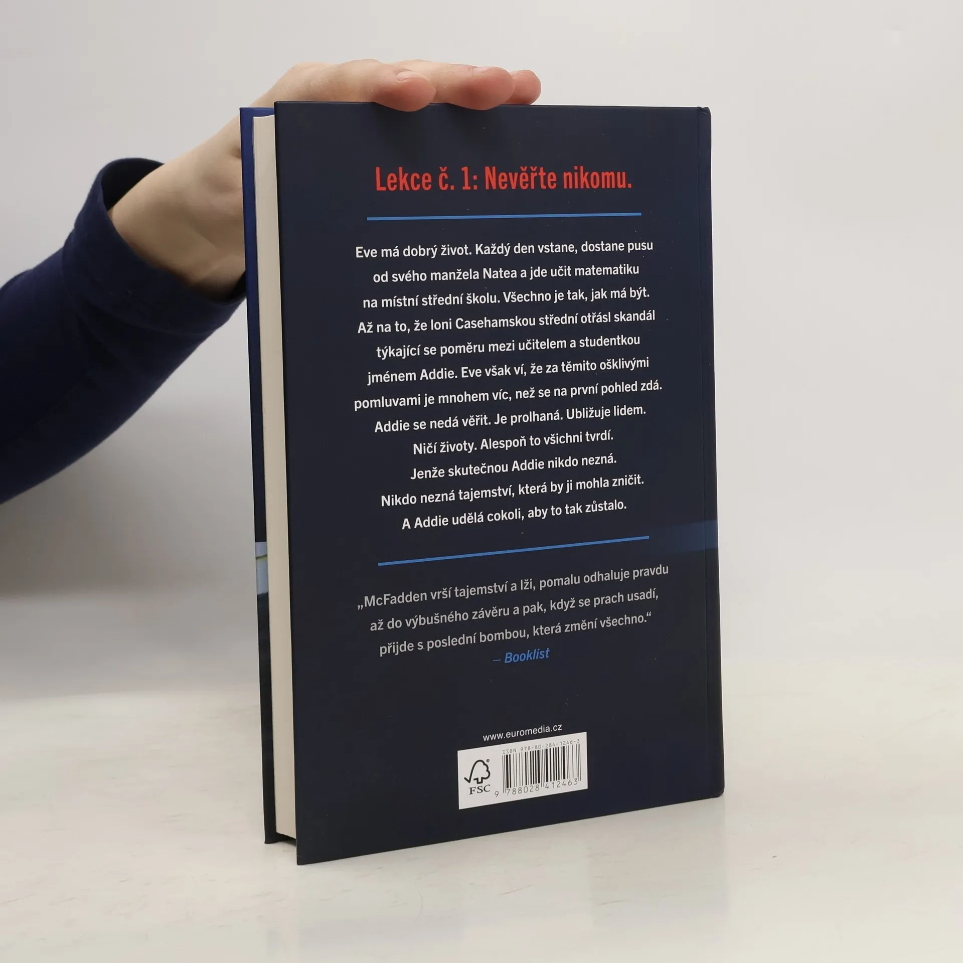 Eve má dobrý život. Každý den vstane, dostane pusu od svého manžela Natea a jde učit matematiku na místní střední školu. Všechno je tak, jak má být. Až na to, že loni casehamskou střední otřásl skandál týkající se poměru mezi učitelem a studentkou jménem Addie. Eve však ví, že za těmito ošklivými pomluvami je mnohem víc, než se na první pohled zdá. Addie se nedá věřit. Je prolhaná. Ubližuje lidem. Ničí životy. Alespoň to všichni tvrdí. Jenže skutečnou Addie nikdo nezná. Nikdo nezná tajemství, která by ji mohla zničit. A Addie udělá cokoli, aby to tak zůstalo.