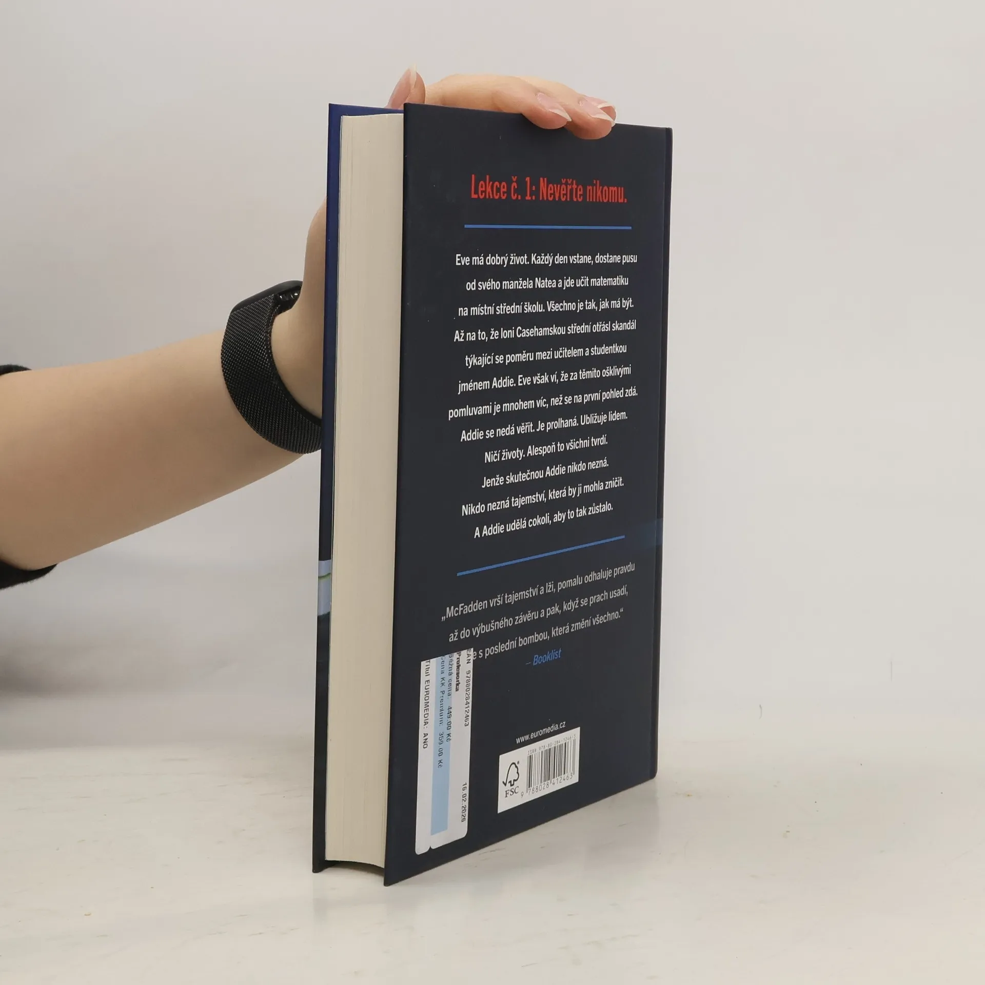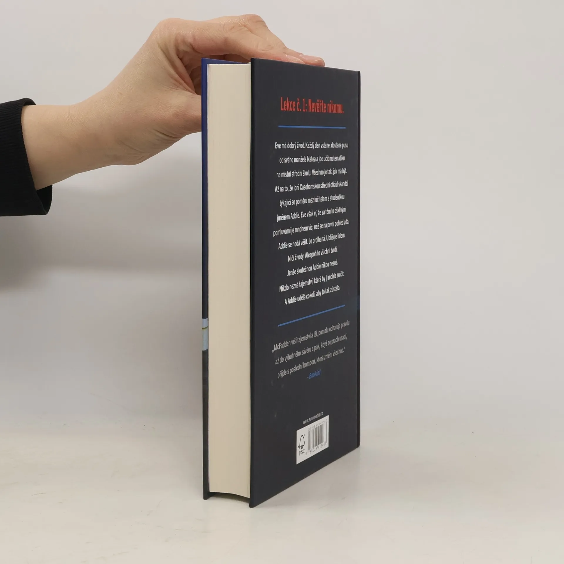 Eve má dobrý život. Každý den vstane, dostane pusu od svého manžela Natea a jde učit matematiku na místní střední školu. Všechno je tak, jak má být. Až na to, že loni casehamskou střední otřásl skandál týkající se poměru mezi učitelem a studentkou jménem Addie. Eve však ví, že za těmito ošklivými pomluvami je mnohem víc, než se na první pohled zdá. Addie se nedá věřit. Je prolhaná. Ubližuje lidem. Ničí životy. Alespoň to všichni tvrdí. Jenže skutečnou Addie nikdo nezná. Nikdo nezná tajemství, která by ji mohla zničit. A Addie udělá cokoli, aby to tak zůstalo.