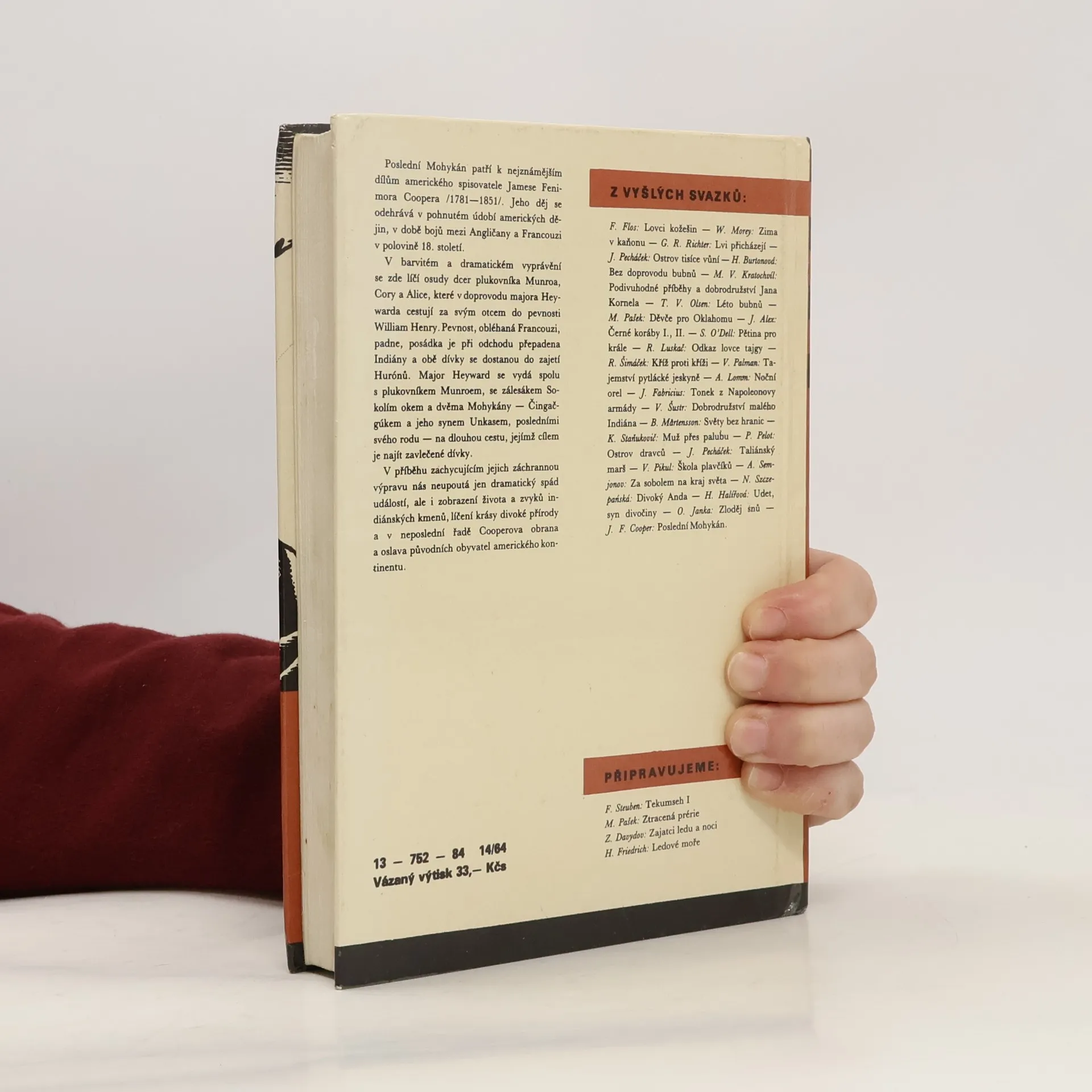 Poslední Mohykán, druhý, zcela samostatný díl slavné pentalogie o zálesákovi Kožené punčoše, se odehrává v době bojů mezi Anglií a Francií na americkém kontinentu. Cooper zde líčí osudy dcer plukovníka Munroa, které se snaží dostat za svým otcem do pevnosti William Henry. Stanou se všakzajatkyněmi Indiána Maguy. Po jejich stopách se vydají zálesák Sokolí oko a dva Mohykáni – Čingačgúk a jeho syn Unkas, poslední svého rodu, aby obě dívky zachránili. 13-752-84