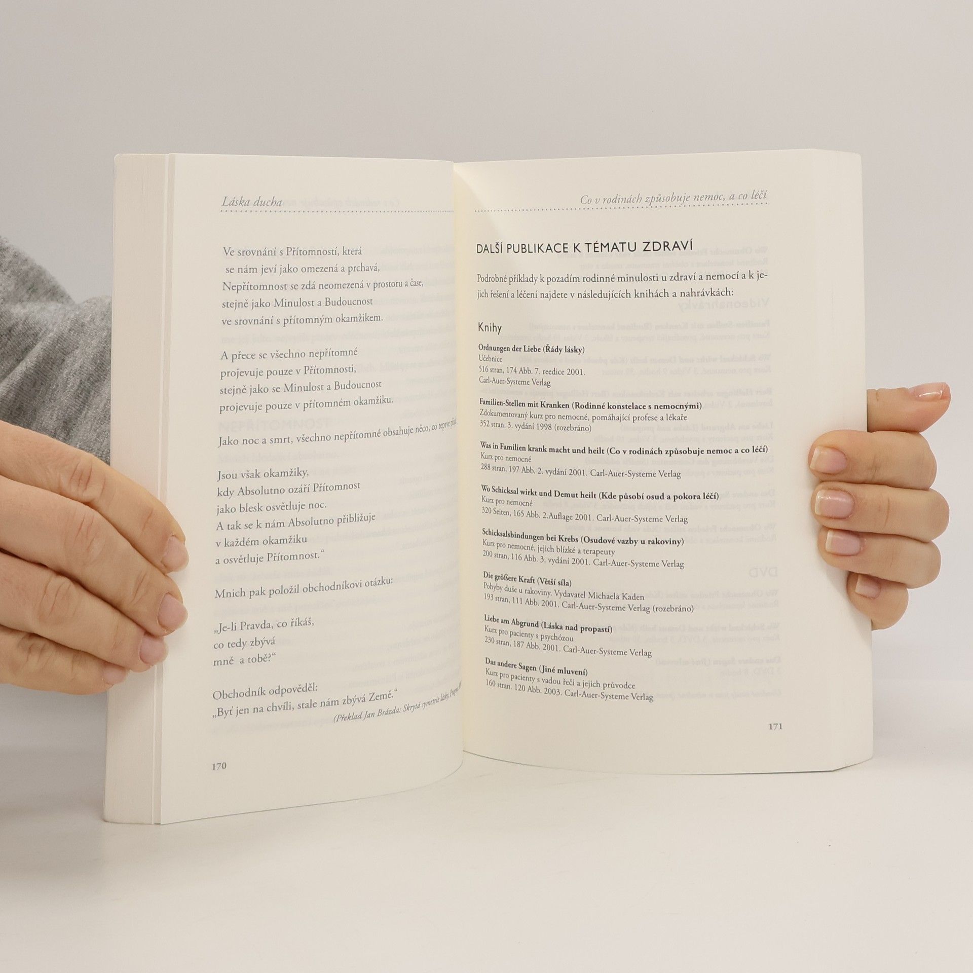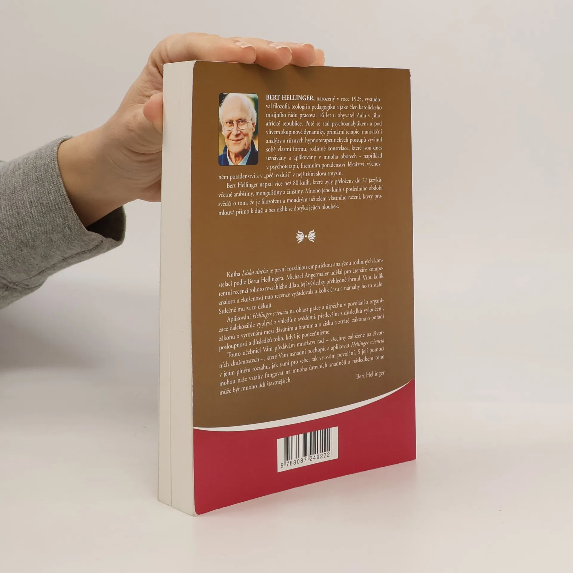 Kniha Láska ducha je první rozsáhlou empirickou analýzou rodinných konstelací podle Berta Hellingera. Michael Angermaier udělal pro čtenáře kompetentní recenzi tohoto rozsáhlého díla a její výsledky přehledně shrnul. Vím, kolik znalostí a zkušeností tato recenze vyžadovala a kolik času a námahy ho to stálo. Srdečně mu za to děkuji. Aplikování Hellinger sciencia na oblast práce a úspěchu v povolání a organizace dalekosáhle vyplývá z vhledů o svědomí, především z důsledků vyloučení, zákonů o vyrovnání mezi dáváním a braním a o zisku a ztrátě, zákona o pořadí posloupnosti a důsledků toho, když je podceňujeme. Touto učebnicí Vám předávám množství rad – všechny založené na životních zkušenostech –, které Vám usnadní pochopit a aplikovat Hellinger sciencia v jejím plném rozsahu, jak sami pro sebe, tak ve svém povolání. S její pomocí mohou naše vztahy fungovat na mnoha úrovních snadněji a následkem toho může být mnoho lidí šťastnějších.
