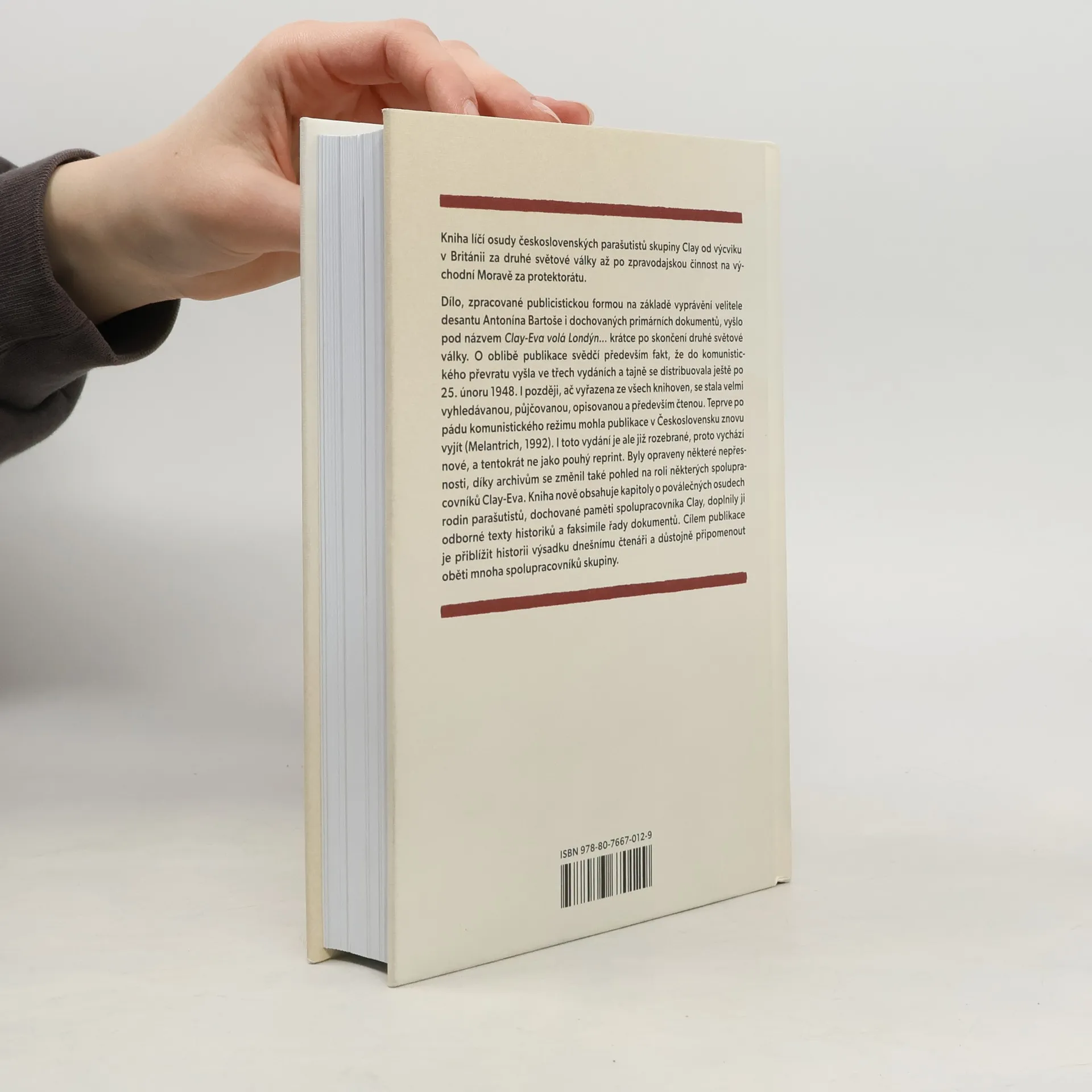 Kniha líčí osudy československých parašutistů skupiny Clay od výcviku v Británii za druhé světové války až po zpravodajskou činnost na Moravě za protektorátu. Dílo, zpracované publicistickou formou na základě vyprávění velitele desantu Antonína Bartoše i dochovaných primárních dokumentů, vyšlo pod názvem Clay-Eva volá Londýn… krátce po skončení druhé světové války. O oblibě publikace svědčí především fakt, že do komunistického převratu vyšla ve třech vydáních a tajně se distribuovala ještě po 25. únoru 1948. I později, ač vyřazena ze všech knihoven, se stala velmi vyhledávanou, půjčovanou, opisovanou a především čtenou. Teprve po pádu komunistického režimu mohla publikace v Československu znovu vyjít (Melantrich, 1992). I toto vydání je ale již rozebrané, proto vychází nové, a tentokrát ne jako pouhý reprint. Byly opraveny některé nepřesnosti, díky archivům se změnil také pohled na roli některých spolupracovníků Clay-Eva. Kniha nově obsahuje kapitoly o poválečných osudech rodin parašutistů, dochované paměti spolupracovníka Clay, doplnily ji odborné texty historiků a faksimile řady dokumentů. Cílem publikace je přiblížit historii výsadku dnešnímu čtenáři a důstojně připomenout oběti mnoha spolupracovníků skupiny.