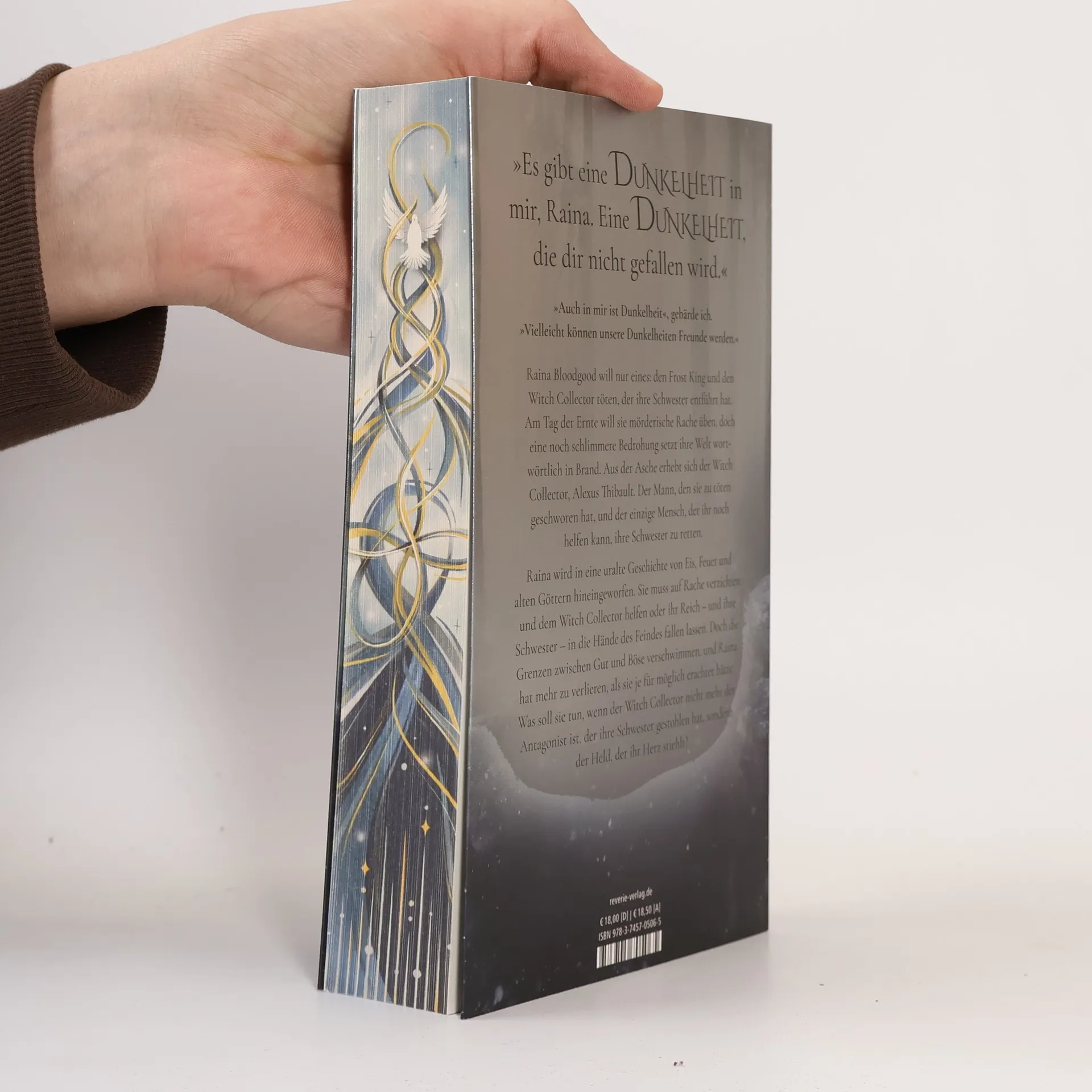 „Es gibt Dunkelheit in mir,Raina. Eine Dunkelheit, die dir nicht gefallen wird.“„In mir ist auch Dunkelheit“, gebärde ich. „Vielleicht können unsere Dunkelheiten Freunde sein.“Raina Bloodgood will nur eines: den Frost King und den Witch Collector töten, der ihre Schwester entführt hat. Am Tag der Ernte will sie mörderische Rache üben, doch eine noch schlimmere Bedrohung setzt ihre Welt wortwörtlich in Brand. Aus der Asche erhebt sich der Witch Collector, Alexus Thibault. Der Mann, den sie zu töten geschworen hat, und der einzige Mensch, der ihr noch helfen kann, ihre Schwester zu retten.Raina wird in eine uralte Geschichte von Eis, Feuer und alten Göttern hineingeworfen. Sie muss auf Rache verzichten und dem Witch Collector helfen oder ihr Reich - und ihre Schwester - in die Hände des Feindes fallen lassen. Doch die Grenzen zwischen Gut und Böse verschwimmen, und Raina hat mehr zu verlieren, als sie je für möglich erachtet hätte. Was soll sie tun, wenn der Witch Collector nicht mehr der Antagonist ist, der ihre Schwester gestohlen hat, sondern der Held, der ihr Herz stiehlt?