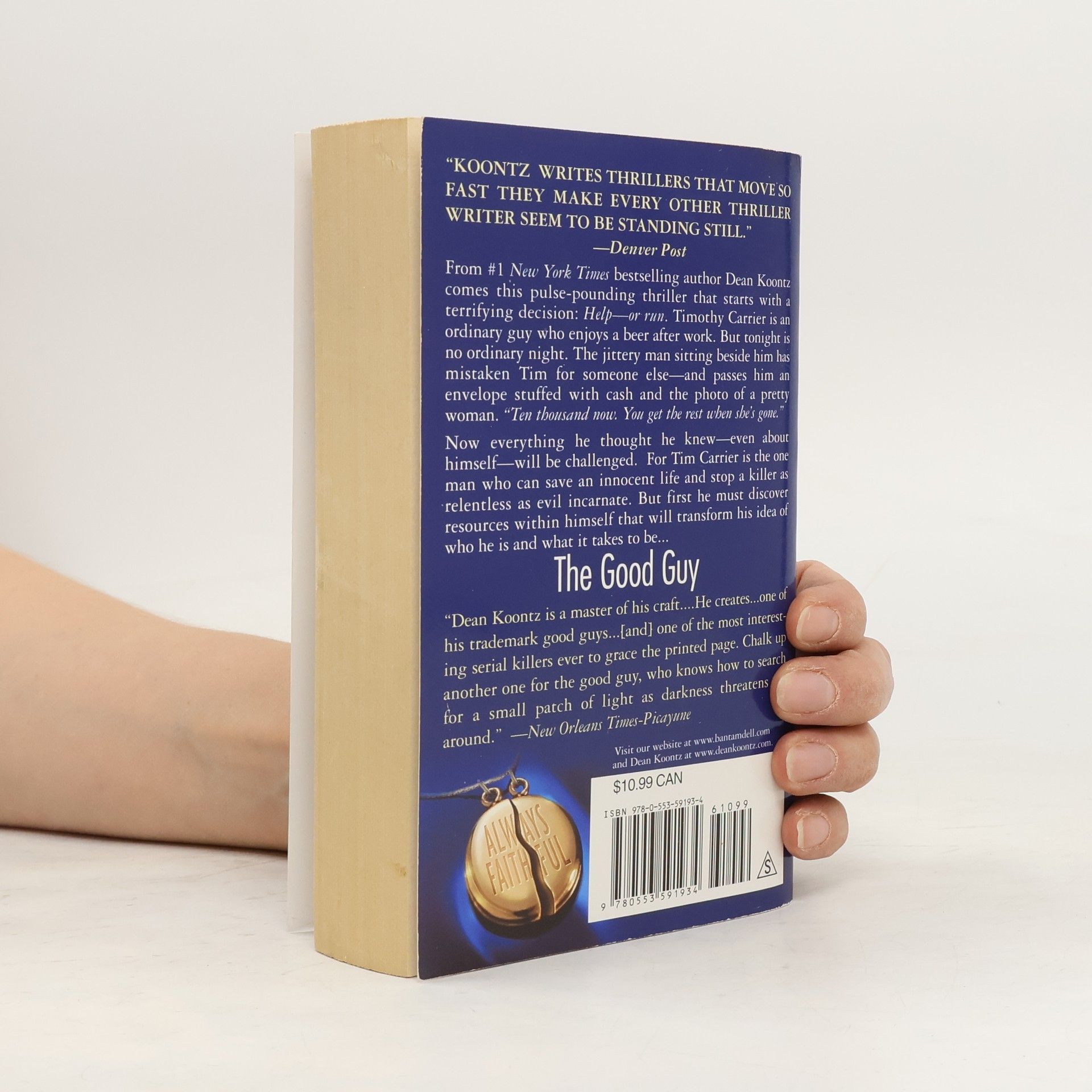 Timothy Carrier, having a beer after work at his friend’s tavern, enjoys drawing eccentric customers into amusing conversations. But the jittery man who sits next to him tonight has mistaken Tim for someone very different—and passes to him a manila envelope full of cash. “Ten thousand now. You get the rest when she’s gone. ” The stranger walks out, leaving a photo of the pretty woman marked for death, and her address. But things are about to get worse. In minutes another stranger sits next to Tim. This one is a cold-blooded killer who believes Tim is the man who has hired him. Thinking fast, Tim says, “I’ve had a change of heart. You get ten thousand—for doing nothing. Call it a no-kill fee.” He keeps the photo and gives the money to the hired killer. And when Tim secretly follows the man out of the tavern, he gets a further shock: the hired killer is a cop. Suddenly, Tim Carrier, an ordinary guy, is at the center of a mystery of extraordinary proportions, the one man who can save an innocent life and stop a killer far more powerful than any cop…and as relentless as evil incarnate. But first Tim must discover within himself the capacity for selflessness, endurance, and courage that can turn even an ordinary man into a hero, inner resources that will transform his idea of who he is and what it takes to be The Good Guy. From the Hardcover edition.