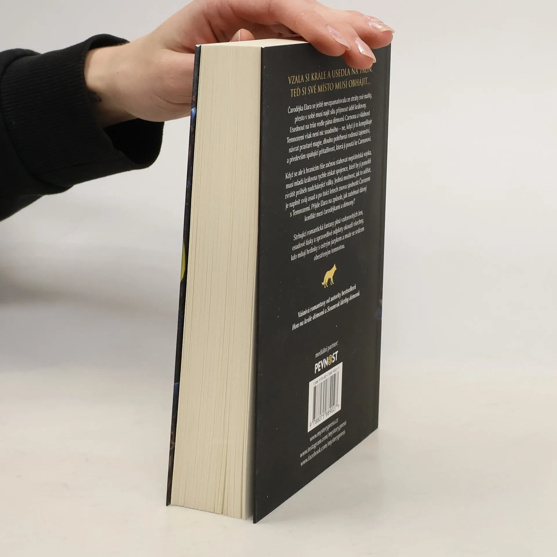 ELARA JE PŘIPRAVENA NAPLNIT SVŮJ OSUD A STÁT SE KRÁLOVNOU ČARODĚJEK…Mladá čarodějka Elara se ještě nevzpamatovala ze ztráty své matky, přesto v sobě musí najít sílu přijmout úděl královny a usednout na trůn vedle krále démonů Carnona. Vládnout Temnozemi však není nic snadného – už vůbec ne, když se začne probouzet pradávná magie a na světlo vyplují tajemství spojená s minulostí Elařiných rodičů.Jakmile se navíc k hranicím říše začnou stahovat nepřátelská vojska, musí královna rychle získat spojence, kteří by pomohli zvrátit průběh blížící se války. Jediná možnost, jak to udělat, je naplnit svůj osud a po tisících let znovu sjednotit znesvářené země. Přijde dívka na způsob, jak zažehnat dávný konflikt mezi čarodějkami a démony?Vášnivá romantasy plná vzdorovitých žen, temných tajemství a spalující přitažlivosti od autorky bestsellerů Hon na krále démonů a Soumrak kletby démonů.