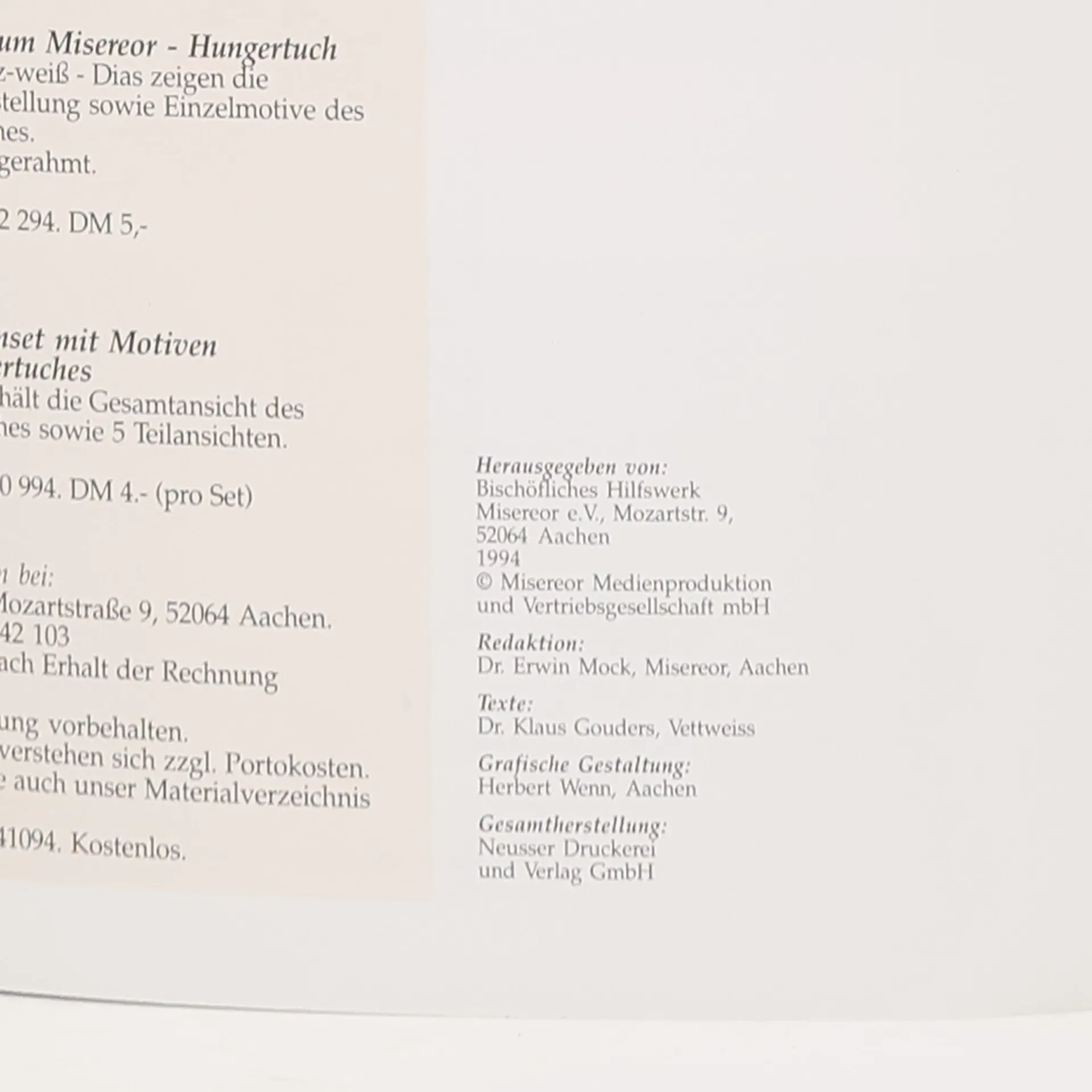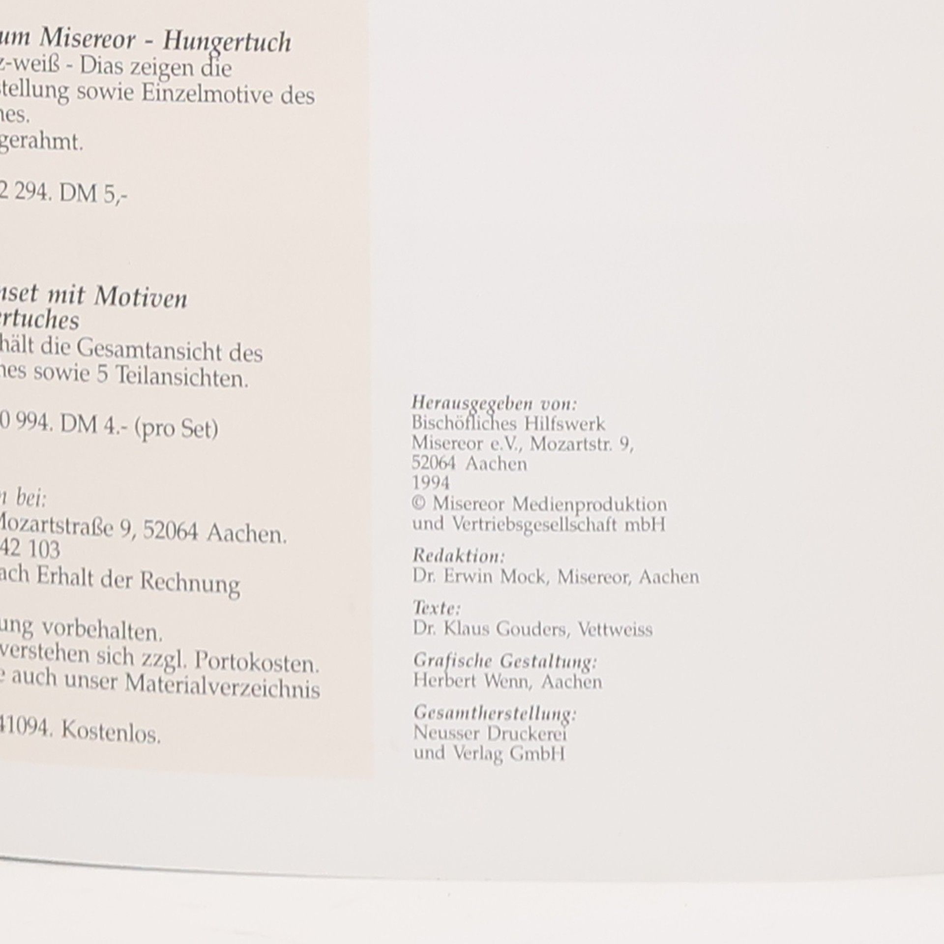 Skladem máme celkem knihy Meditationen zum Misereor-hungertuch (1994).