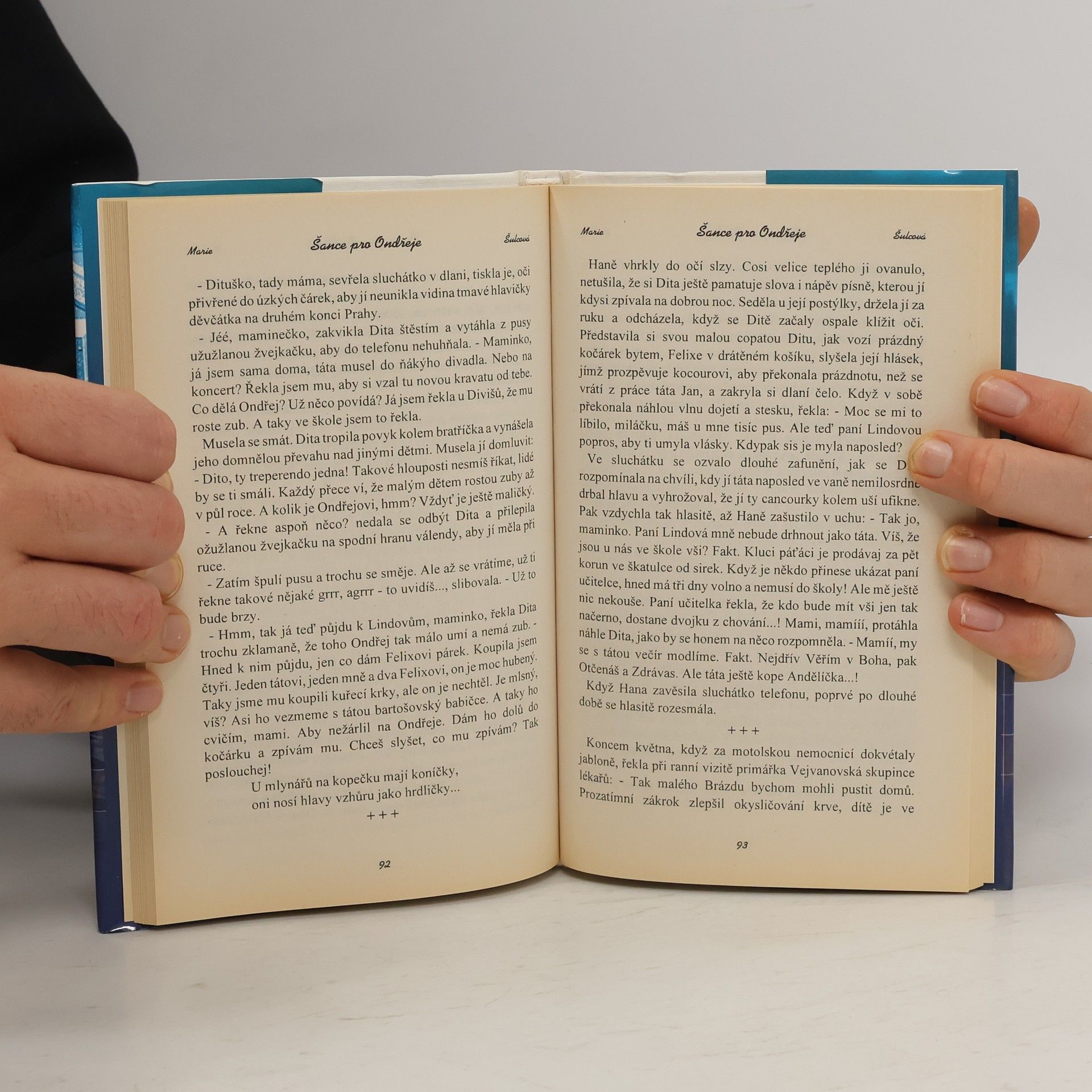 Rodina a dítě! Čas krásného čekání na zázrak zrození nového života! A přece se stává, že do radostných chvil vnikne bolest; dítě se narodí ale není zdravé! Kus takové lidské bolesti stopuje novela Marie Šulcové, Šance pro Ondřeje. Rodičům Brázdovým s osmiletou Juditou se narodí vytoužený a krásný chlapeček, ale jeho život visí na vlásku, má těžkou srdeční vadu; má-li vůbec žít, musí se podrobit velmi náročné operaci srdíčka. Novela je psychologickou sondou do života mladé rodiny. Ne každý chápal obrovské úsilí lékařů a rodičů o zachování života dítěte. Ozvaly se hlasy, dokonce i v blízkém příbuzenstvu: Nechte dítě umřít! Jenže mámino, tátovo a Juditčino srdce říkalo cosi jiného. Čtenář bude s napětím sledovat celou složitost jejich situace, kdy je matka s dítětem na klinice, dokonce vydírána některými jedinci. Bude s napětím sledovat jejich boj o dítě a nezměrné úsilí vynikajících lékařů o zachování života malého Ondřeje. Toto veliké úsilí posvěcuje láska k dítěti a k člověku. Knížka Šance pro Ondřeje je svou nadějí věnována ,,všem, kdož jsou zarmouceni nepřízní osudu svých dětí".