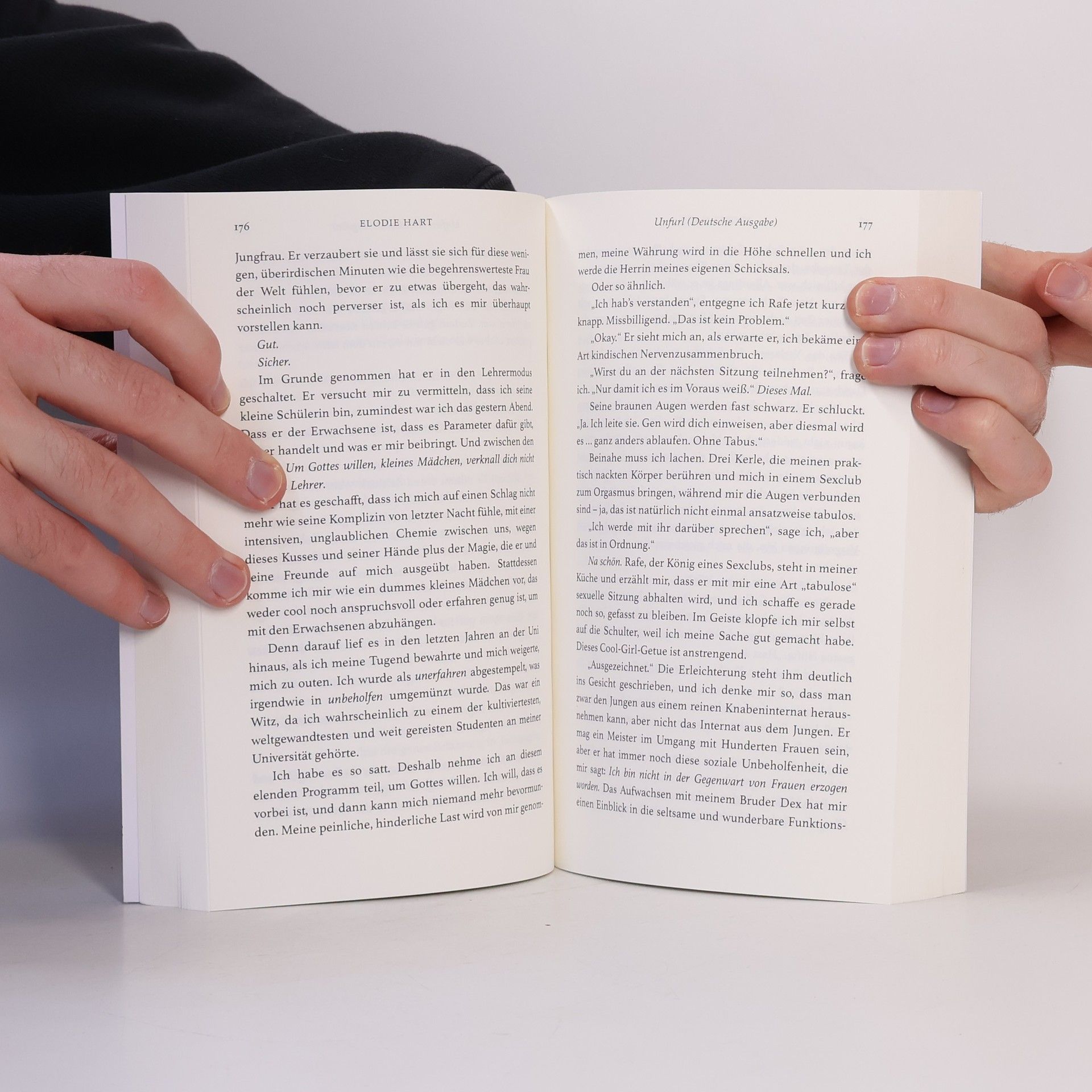 BELLE Wenn dir dein ganzes Leben lang gesagt wurde, dass etwas sündhaft ist, hast du zwei Möglichkeiten. Entweder meidest du es wie die Pest, als hätte es die Macht, alles Gute und Reine zu zerstören. Oder du wirst so besessen davon wie Eva von dem Apfel. Ich bin müde von dem Hin und Her zwischen Angst und Versuchung. Es zerreißt mich. Ich will nur einen Bissen von dem Apfel. Mehr als einen Bissen. Ich will ihn verschlingen. Seine Säfte von meinen Lippen rinnen lassen. Und mit Apfel meine ich natürlich Sex. RAFE Meine neue Nachbarin ist so schön, dass sie einen Mann auf die Knie bringen könnte. Aber sie ist zweiundzwanzig. Vierzehn Jahre jünger als ich. Das ist zu jung. Ich habe geschworen, mich fernzuhalten. Bis sie zu mir kommt, um Hilfe zu bitten. Es scheint, als hätte sie etwas zu entsorgen. Ihre Keuschheit. Und es scheint, als hätte ich etwas, das sie will. Den Club, den ich für anspruchsvolle Erwachsene leite. Genauer gesagt, das Programm, das wir für Frauen wie Belle entwickelt haben. Ein Programm, das sie von unschuldig zu verdammt verwandeln wird. Die Teile von ihr entfalten, die sie bis jetzt geleugnet hat. Es scheint, als könnte ich nicht der Einzige sein, der auf die Knie fällt. Gott hilf uns beiden. Unfurl ist eine leidenschaftliche zeitgenössische Romanze mit Altersunterschied.