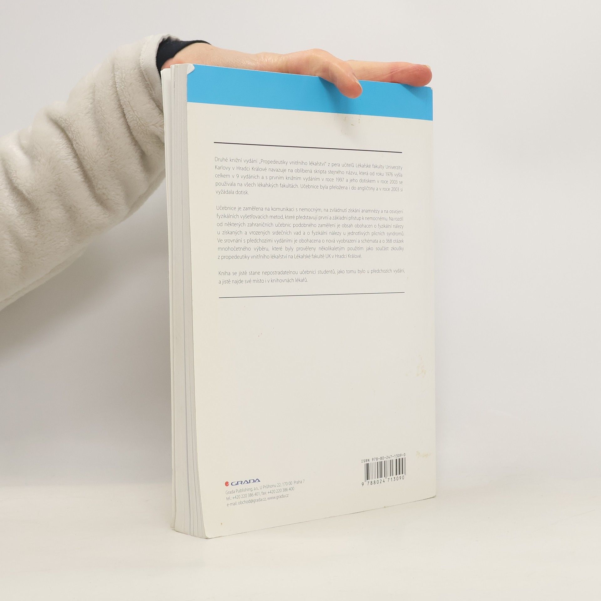 Tato zcela nová, přepracovaná a doplněná publikace navazuje na mimořádně úspěšnou učebnici z roku 1997, která spolu s dřívějšími 9 vydáními ve formě skript a 2 dotisků knižního vydání je vydávána celkem po třinácté a byla používána na všech lékařských fakultách.Publikace byla a je studenty hodnocena za didakticky nejlepší ze současně dostupných učebnic pro vstup do základního klinického oboru. Studenti se tak systematicky seznamují naprosto srozumitelným a názorným způsobem s fyzikálním vyšetřen