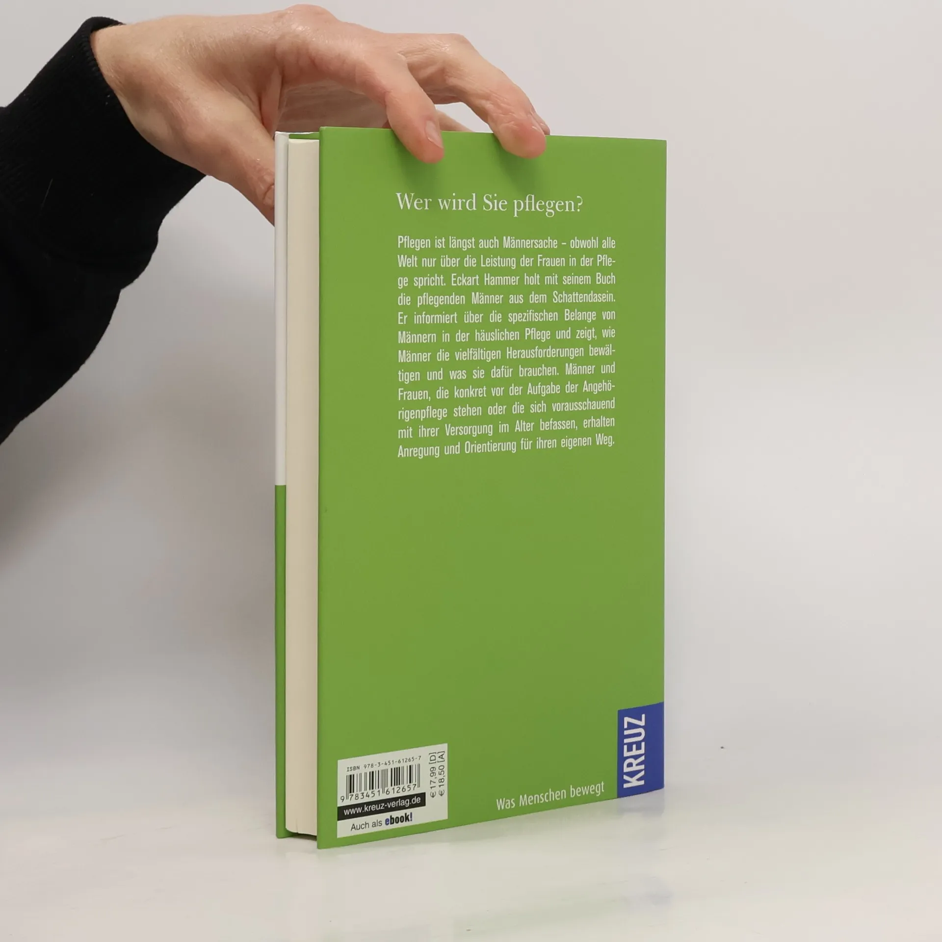 1,8 Millionen Männer pflegen ihre Frauen, Mütter oder andere Angehörige zu Hause. Das sind 35 Prozent der Pflege ist längst auch Männersache - obwohl alle Welt nur über die Leistung der Frauen in der Pflege spricht. Eckart Hammer holt die pflegenden Männer aus dem Schattendasein, begleitet und unterstützt sie mit seinem Buch. Er zeigt, wie sie ihre Aufgabe bewältigen können und er macht deutlich, welche Unterstützung sie brauchen.