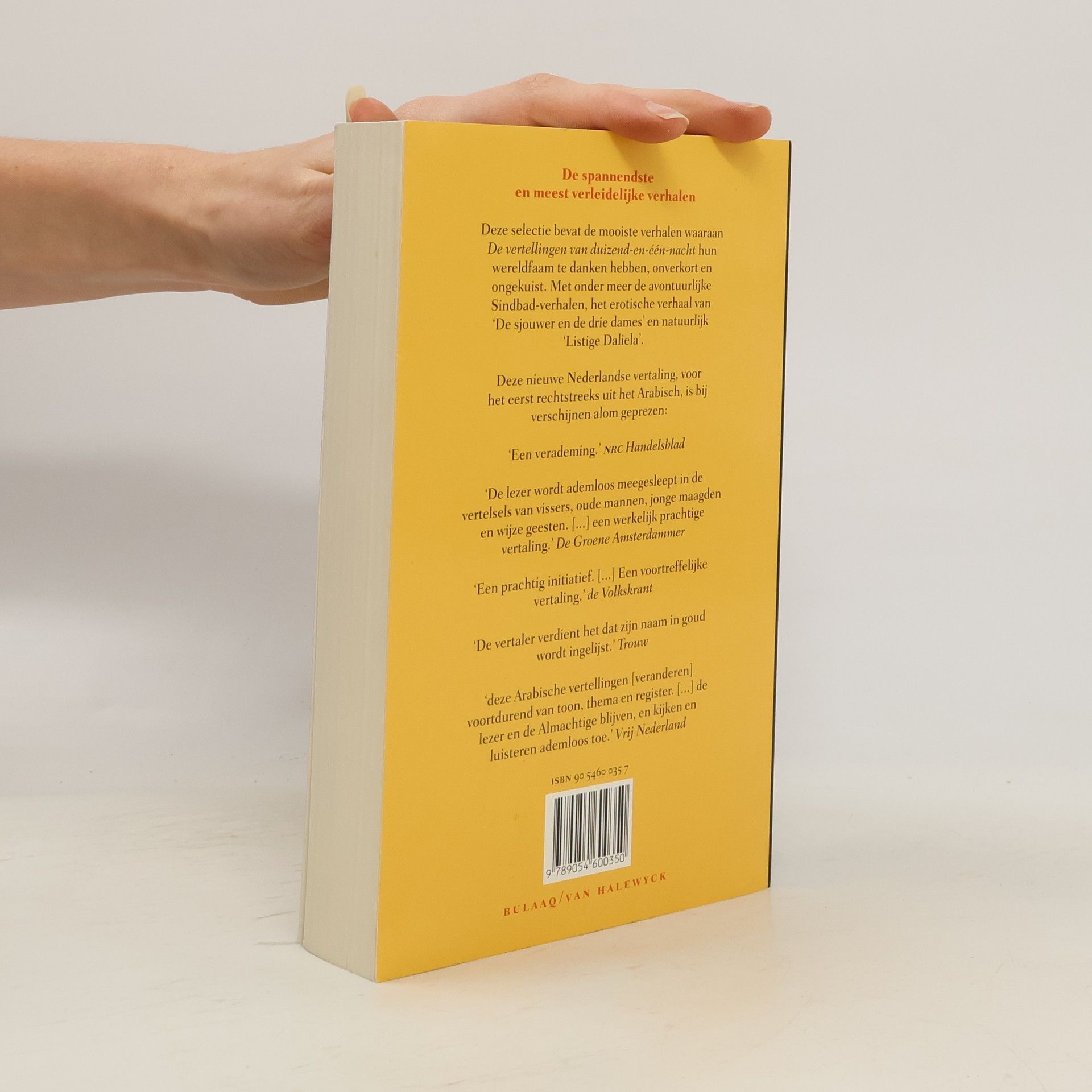 Deze selectie bevat de mooiste verhalen waaraan De vertellingen van duizend-en-één-nacht hun wereldfaam te danken hebben, onverkort en ongekuist. Met onder meer de avontuurlijke Sinbad-verhalen, het erotische verhaal van 'De sjouwer en de drie dames' en natuurlijk 'Listige Daliela'. Al sinds enige jaren wordt het project ondernomen van de eerste integrale vertaling van 'Duizend en één nacht' direct vanuit het Arabisch in het Nederlands. Binnen enkele jaren zal dit project voltooid zijn. Tot nog toe zijn er tien delen verschenen, in twee edities: afzonderlijk in paperbacks of per twee delen in één gebonden band. Het is een goede gedachte geweest daaruit nu een bloemlezing te brengen. Deze selectie, die onder meer de avontuurlijke Sindbad-verhalen, het erotische verhaal van 'De sjouwer en de drie dames' en 'Listige Daliela' omvat, staat diegenen ten dienste die de hele uitgave te duur vinden, maar zal ongetwijfeld velen doen verlangen naar de volledige uitgave. Met achterin verklarende noten en een kort inleidinkje. De resterende delen 3/4 en 13/14 verschijnen in 1998 en 1999.
