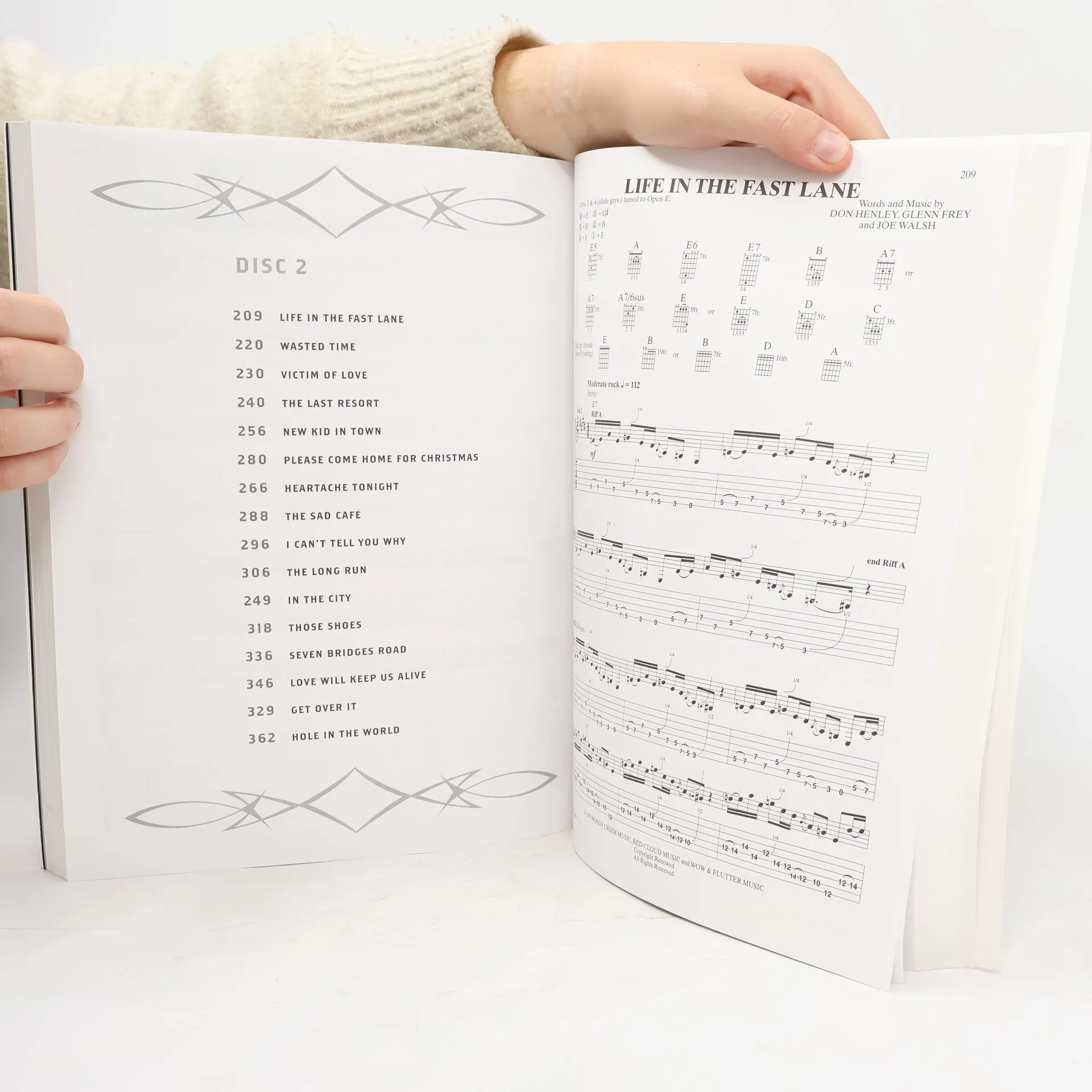 Containing 33 titles from the Eagles' remarkable career, this album-matching folio includes 24 pages featuring photos of the band and a conversation with Don Henley and Glenn Frey that provides background information on how the songs were written and the meaning behind them. Titles include: After the Thrill Is Gone * Already Gone * The Best of My Love * Desperado * Get Over It * Heartache Tonight * Hole in the World * Hotel California * The Last Resort * Life in the Fast Lane * The Long Run * Love Will Keep Us Alive * Lyin' Eyes * Take It Easy * Take It to the Limit * Tequila Sunrise * Victim of Love * Wasted Time * Witchy Woman and many more.