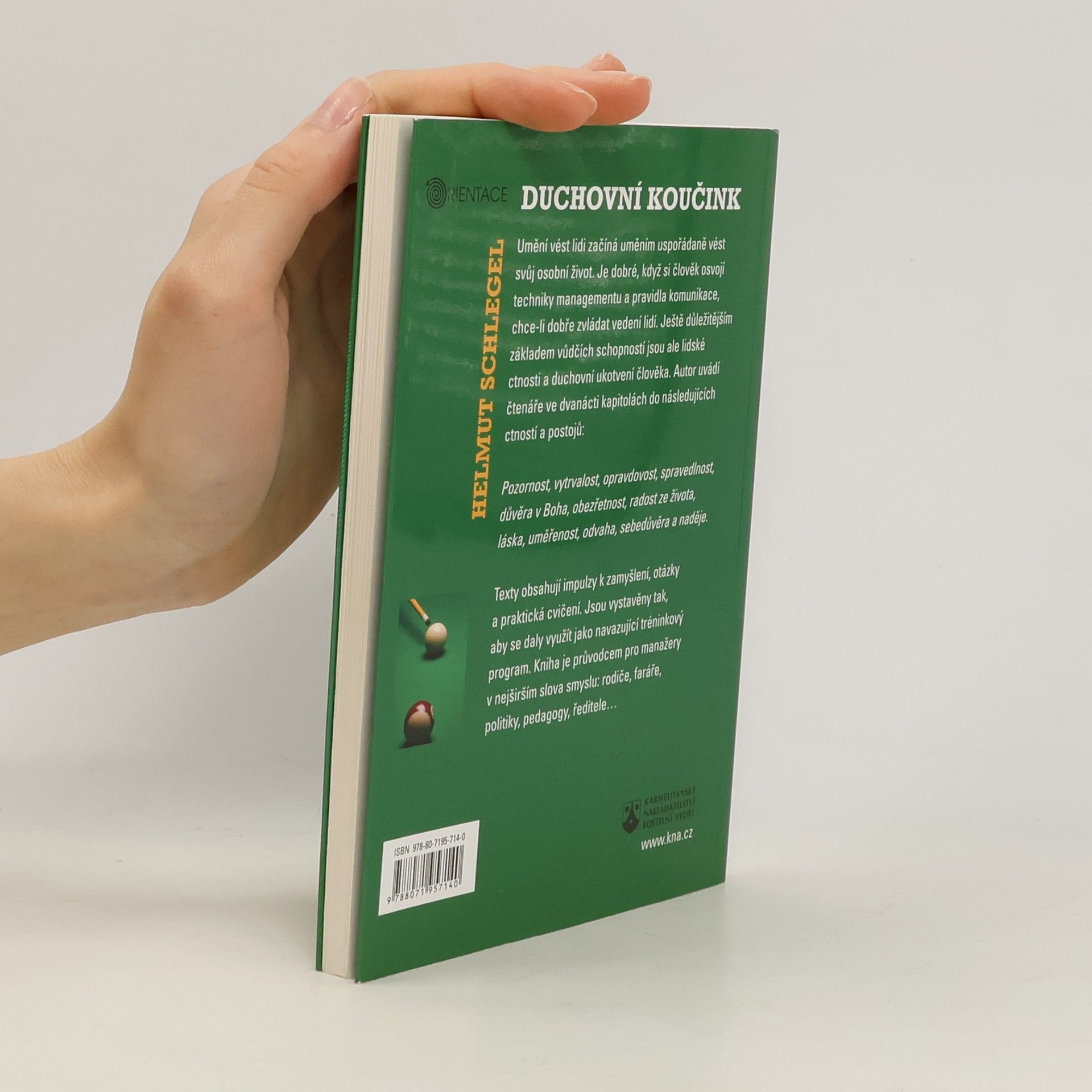 Umění vést lidi začíná uměním uspořádaně vést svůj osobní život. Je dobré, když si člověk osvojí techniky managementu a pravidla komunikace, chce-li dobře zvládat vedení lidí. Ještě důležitějším základem vůdčích schopností jsou ale lidské ctnosti a duchovní ukotvení člověka. Autor uvádí čtenáře ve dvanácti kapitolách do následujících ctností a postojů: pozornost, vytrvalost, opravdovost, spravedlnost, důvěra v Boha, obezřetnost, radost ze života, láska, uměřenost, odvaha, sebedůvěra a naděje. Texty obsahují impulzy k zamyšlení, otázky a praktická cvičení. Kniha je průvodcem pro manažery v nejširším slova smyslu: rodiče, faráře, politiky, pedagogy, ředitele…