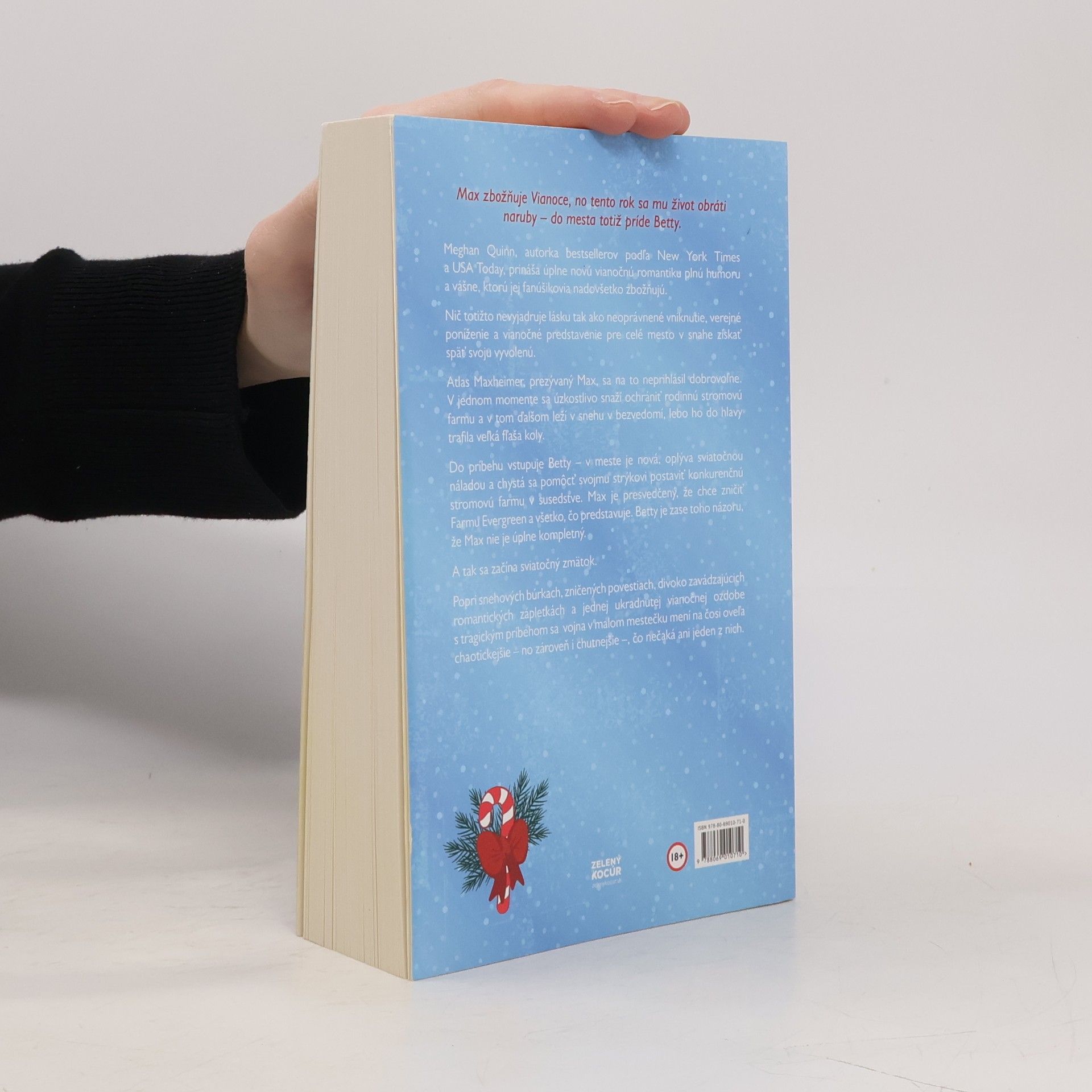 Max zbožňuje Vianoce, no tento rok sa mu život obráti naruby – do mesta totiž príde Betty. Meghan Quinn, autorka bestsellerov podľa New York Times a USA Today, prináša úplne novú vianočnú romantiku plnú humoru a vášne, ktorú jej fanúšikovia nado všetko zbožňujú. Nič totižto nevyjadruje lásku tak ako neoprávnené vniknutie, verejné poníženie a vianočné predstavenie pre celé mesto v snahe získať späť svoju vyvolenú. Atlas Maxheimer, prezývaný Max, sa na to neprihlásil dobrovoľne. V jednom momente sa úzkostlivo snaží ochrániť rodinnú stromovú farmu a v tom ďalšom leží v snehu v bezvedomí, lebo ho do hlavy trafila veľká fľaša koly. Do príbehu vstupuje Betty – v meste je nová, oplýva sviatočnou náladou a chystá sa pomôcť svojmu strýkovi postaviť konkurenčnú stromovú farmu v susedstve. Max je presvedčený, že chce zničiť Farmu Evergreen a všetko, čo predstavuje. Betty je zase toho názoru, že Max nie je úplne kompletný. A tak sa začína sviatočný zmätok. Popri snehových búrkach, zničených povestiach, divoko zavádzajúcich romantických zápletkách a jednej ukradnutej vianočnej ozdobe s tragickým príbehom sa vojna v malom mestečku mení na čosi oveľa chaotickejšie – no zároveň i chutnejšie –, čo nečaká ani jeden z nich.