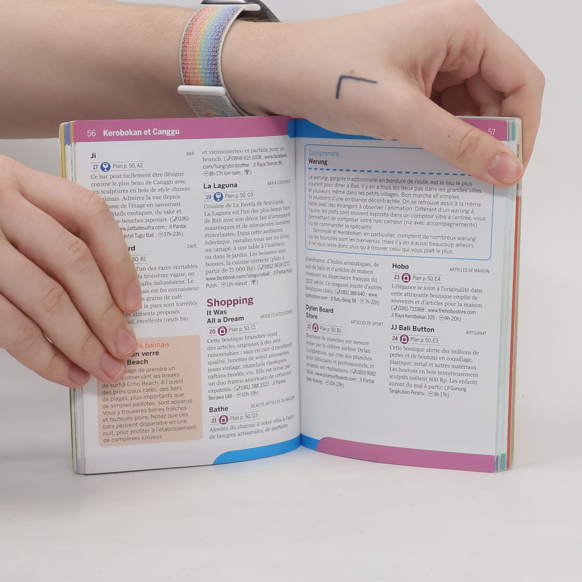 Tous les principaux sites décryptés : Kuta et sa plage, Seminyak, la péninsule de Bukit, la dynamique capitale de Denpasar, Ubud, coeur de la culture balinaise... Un découpage du sud de l'île par stations balnéaires et grandes villes, et un chapitre consacré à l'est de Bali, avec des focus sur les sites incontournables et les meilleures adresses pour se restaurer, prendre un verre, sortir, visiter ou faire du shopping. Plusieurs suggestions de parcours et d'itinéraires thématiques : les plages moins fréquentées de Canggu, une balade dans Ubud, les rizières autour d'Ubud, la vallée de la Sungai Ayung. Des excursions vers la montagne de Gunung Batukau pour découvrir son temple, vers l'île de Nusa Lembongan au sud-est ou l'île de Gili Trawangan au large de Lombok. Des focus pour profiter de la bouillonnante vie nocturne locale. Une sélection des meilleures plages, spots de surf et sites de plongée, et de nombreuses cartes pour faciliter les déplacements.