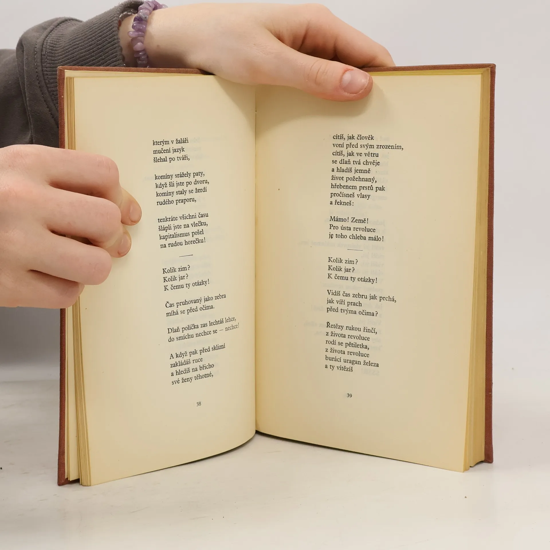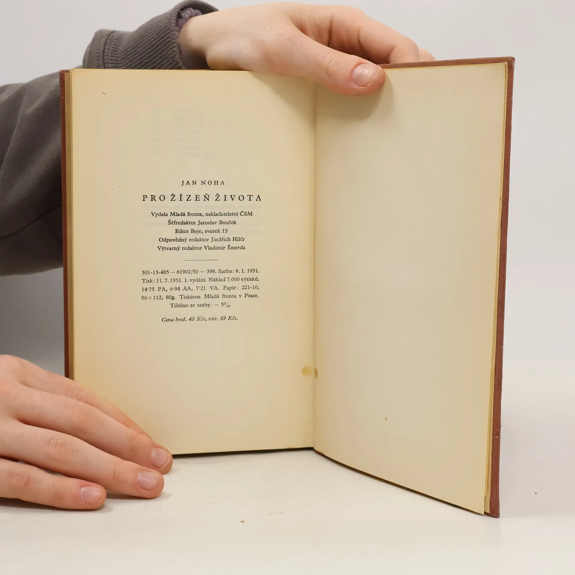Verše tohoto souboru ukazují cestu Jana Nohy, kterou prošel od svých prvních básní (vyd. 1932) až do dnešních dnů. Soubor je rozdělen do oddílů podle pův. názvů sbírek: Běžící pás (verše psané pro agitač. sbory komsomol. mládeže Modré bluzy, proletářská poesie wolkerovského ražení), Pro žízeň života (2. sb. z r. 1933, věnovaná „otci a matce, zabitým válkou, žízni a hladu, životu a smrti, životu, životu, slunci“, kniha v níž básník vyjadřuje touhu tisíců svých současníků z doby hospodářské krise, touhu po svobodné práci, jejíž skvělý příklad vidí v SSSR), Spodní prameny (sen o revoluci a boj proti válce). Dvanáct májů (ukázky z té části sbírky, v niž básník zůstává věren dělnické poesii), Pastorale, Myšlenkový kruh, Milostná větvení, Zlatoperný čas (několik básní ze sbírek vyšlých za války) a poslední oddíl z doby po r. 1945: S východem slunce – Světlo – Z neotištěných veršů, v nichž Noha navazuje na své první sbírky, v nichž si uvědomuje, že i on musí jít cestou lidu nastupujícího k socialismu.