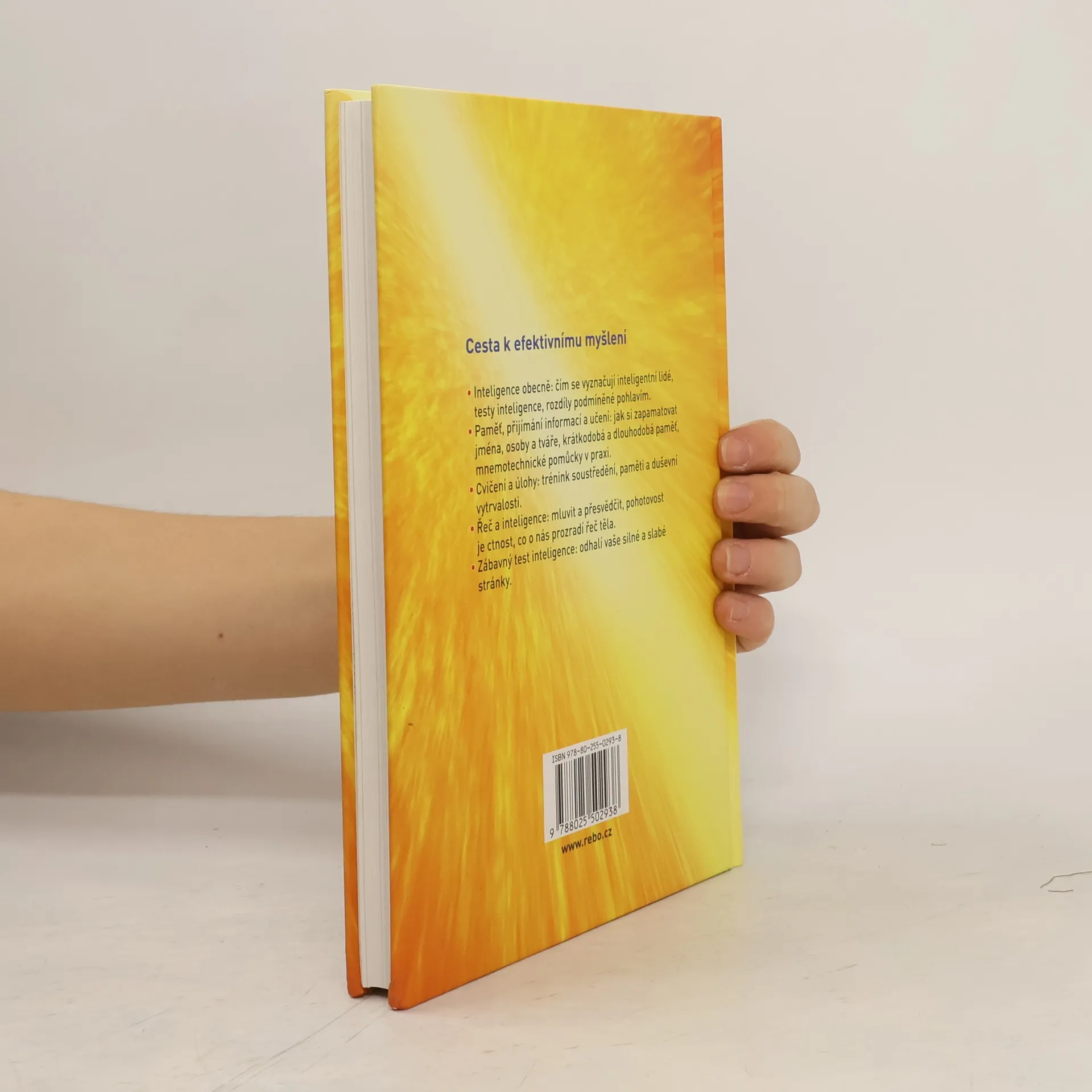 Tato kniha je ideálním průvodcem na cestě k efektivnímu myšlení. Čtenář se zde dozví mnoho užitečných informací o inteligenci, paměti, přijímání informací a učení, soustředění, ale i o mluvené řeči a řeči těla. Kniha obsahuje řadu praktických tipů, jak cvičit mozek, jak pohotově zpracovávat informace, jak se lépe soustředit apod., ale také nejrůznější testy, mnemotechnické pomůcky a další cvičení k trénování paměti a duševní vytrvalosti. Vyšlo již dříve pod názvem Efektivní myšlení.