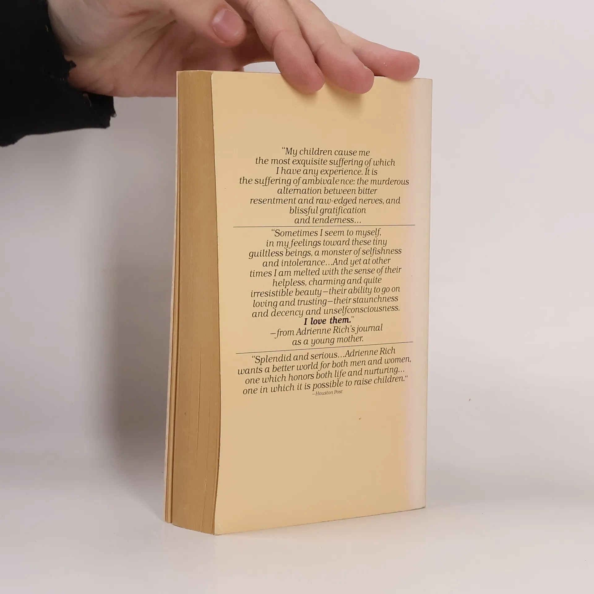 The experience is her own—as a woman, a poet, a feminist, and a mother—but it is an experience determined by the institution, imposed on all women everywhere. She draws on personal materials, history, research, and literature to create a document of universal importance.
