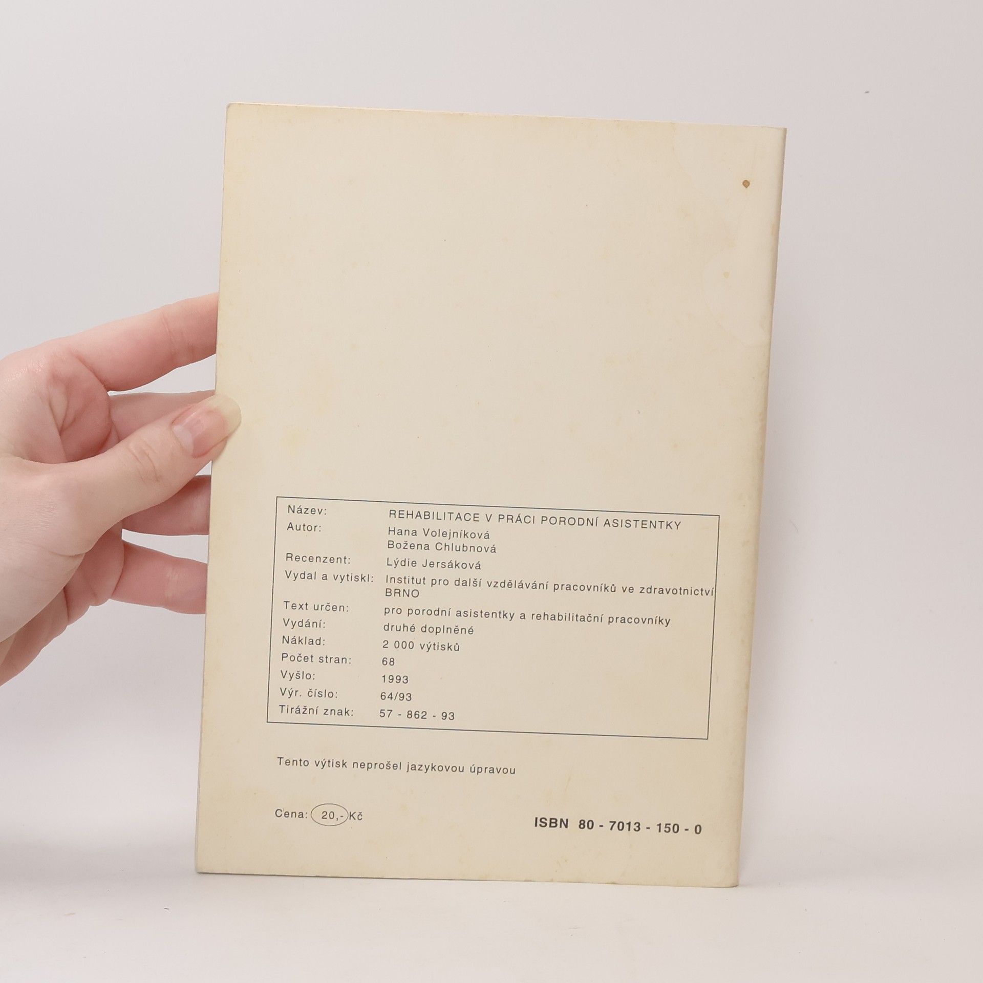 Skladem máme celkem knihy Rehabilitace v práci porodní asistentky (1993).
