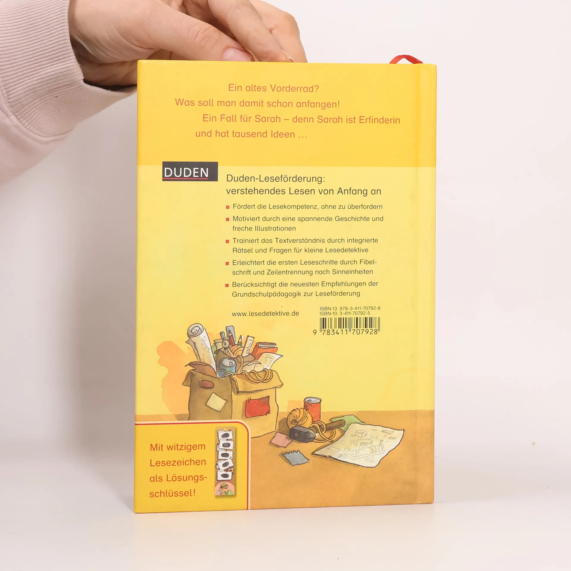 Sarah ist eine Sachenfinderin. Aus Teilen ihrer Fundsachensammlung bastelt sie einen Findekompass, der auch funktioniert. Ab 7.
