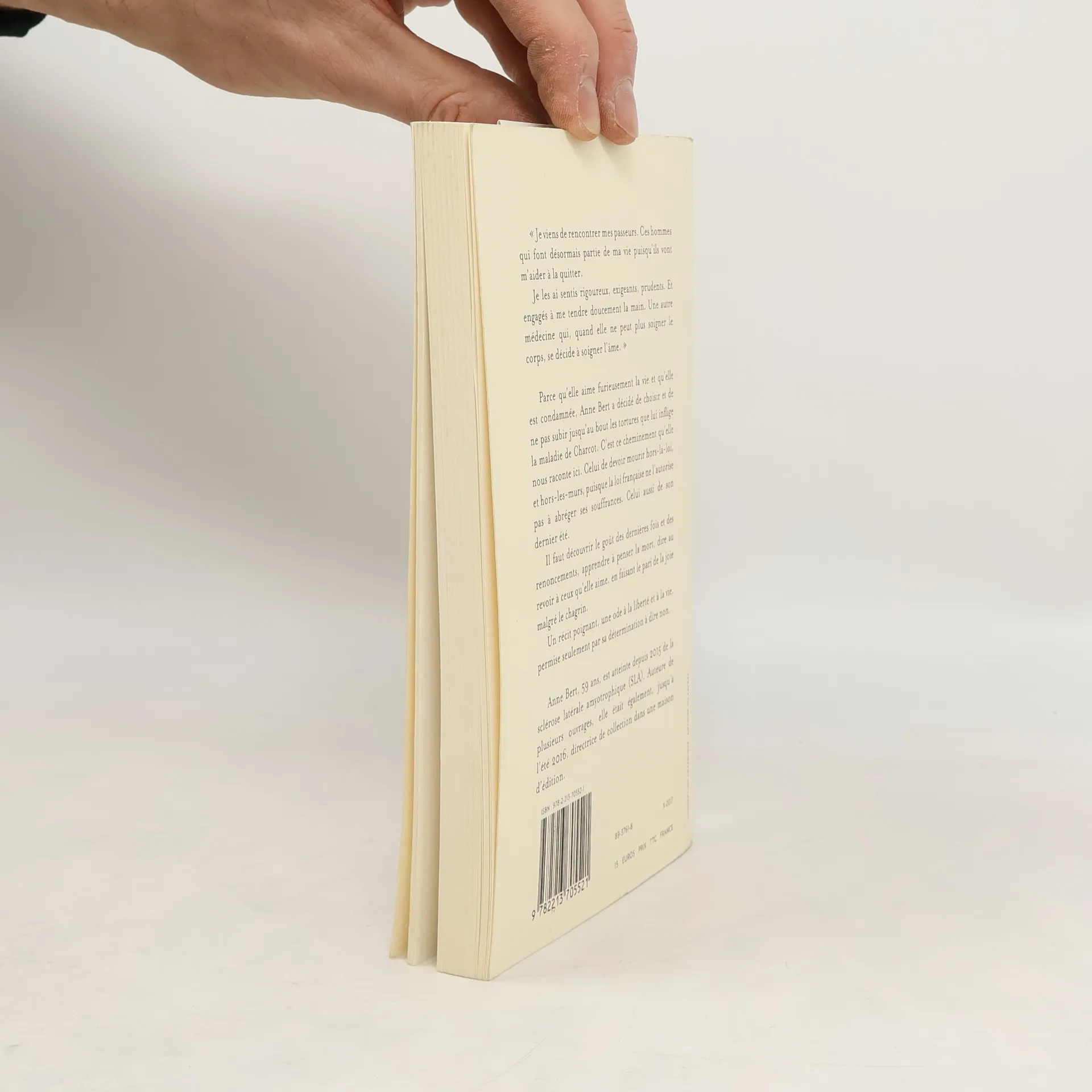 "Je viens de rencontrer mes passeurs. Ces hommes qui font désormais partie de ma vie puisqu'ils vont m'aider à la quitter. Je les ai sentis rigoureux, exigeants, prudents. Et engagés à me tendre doucement la main. Une autre médecine qui, quand elle ne peut plus soigner le corps, se décide à soigner l'âme." Parce qu'elle aime furieusement la vie et qu'elle est condamnée, Anne Bert a décidé de choisir et de ne pas subir jusqu'au bout les tortures que lui inflige la maladie de Charcot. C'est ce cheminement qu'elle nous raconte ici. Celui de devoir mourir hors-la-loi, et hors-les-murs, puisque la loi française ne l'autorise pas à abréger ses souffrances. Celui aussi de son dernier été. Il faut découvrir le goût des dernières fois et des renoncements, apprendre à penser la mort, dire au revoir à ceux qu'elle aime, en faisant le pari de la joie malgré le chagrin. Un récit poignant, une ode à la liberté et à la vie, permise seulement par sa détermination à dire non.