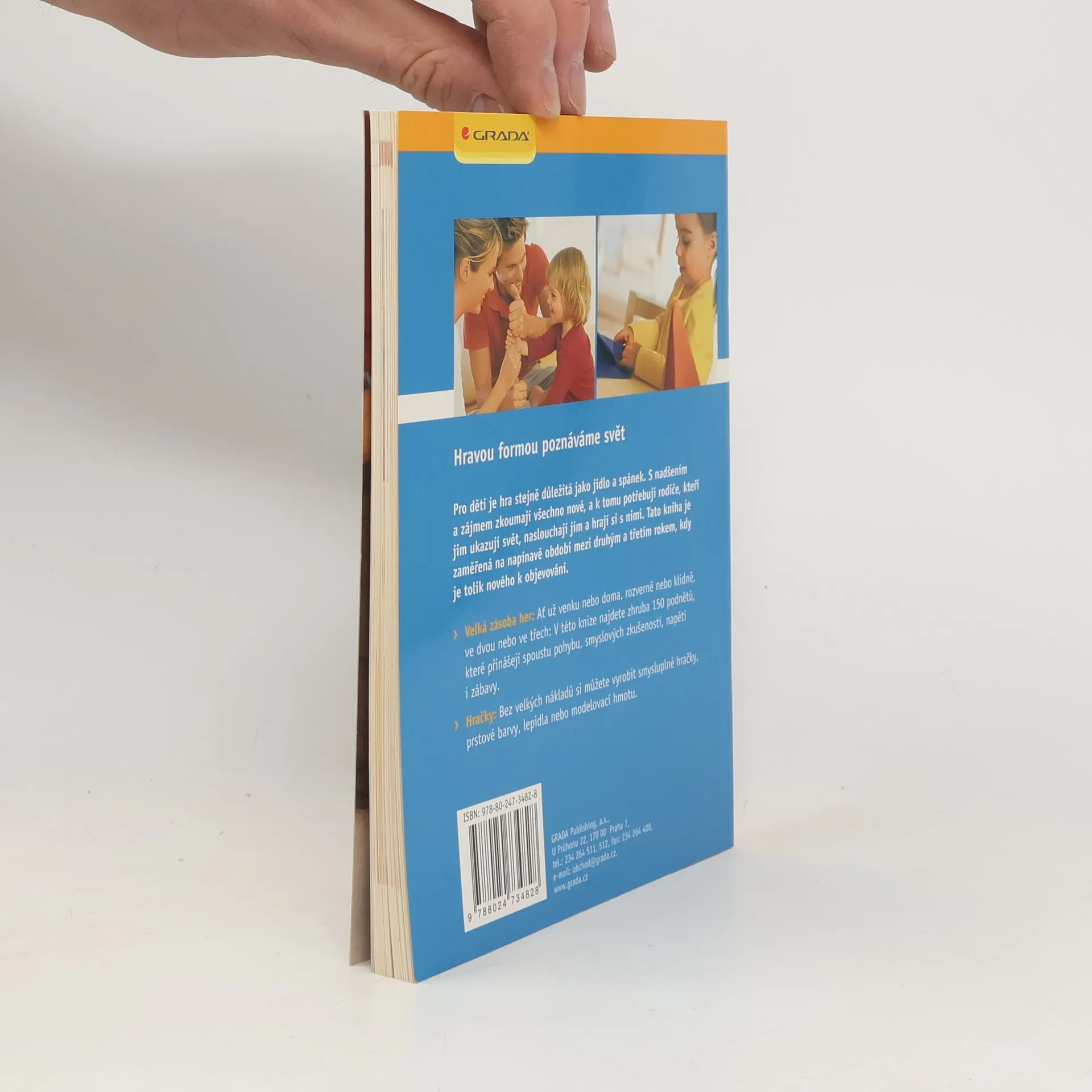 Hravou formou poznáváme svět- cvičení a učení pro děti od 1 roku do 3 let. Pro děti je hra stejně důležitá jako jídlo a spánek. S nadšením a zájmem zkoumají všechno nové, a k tomu potřebují rodiče, kteří jim ukazují svět, naslouchají jim a hrají si s nimi. Tato kniha je zaměřená na napínavé období mezi druhým a třetím rokem, kdy je tolik nového k objevování. Velká zásoba her: Ať už venku nebo doma, rozverně nebo klidně, ve dvou nebo ve třech: V této knize najdete zhruba 150 podnětů, které přinášejí spoustu pohybu, smyslových zkušeností, napětí i zábavy. Hračky: Bez velkých nákladů si můžete vyrobit smysluplné hračky, prstové barvy, lepidla nebo modelovací hmotu.