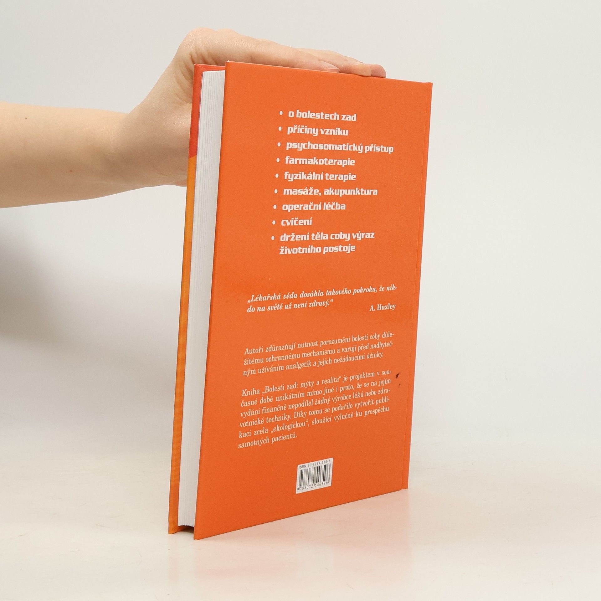 Do ordinací přichází denně více než osmdesát procent pacientů s bolestmi zad, jejichž příčinu se nepodaří objasnit ani těmi nejmodernějšími prostředky lékařské techniky. Stejně tak svízelná a neúspěšná je pak i následná léčba. Na jejich vzniku se totiž podílí řada faktorů ústících do chronického přetížení možností organismu, stresu, jehož synonymem je i sedavý životní styl, nedostatek aktivní regenerace, případně nadváha. Východiskem z těchto obtíží pak v drtivé většině případů není užívání léků a opakované návštěvy lékařských specialistů, nýbrž právě komplexní psychosomatický přístup objasňující skutečné příčiny obtíží, motivující pacienty k využití vlastních zdrojů a k aktivnímu přístupu v péči o vlastní zdraví. Kniha obsahuje kromě části teoretické, věnované prevenci, včasné diagnostice a léčbě, i doporučení konkrétních pohybových programů, kompenzačních cviků a úpravy životního stylu.