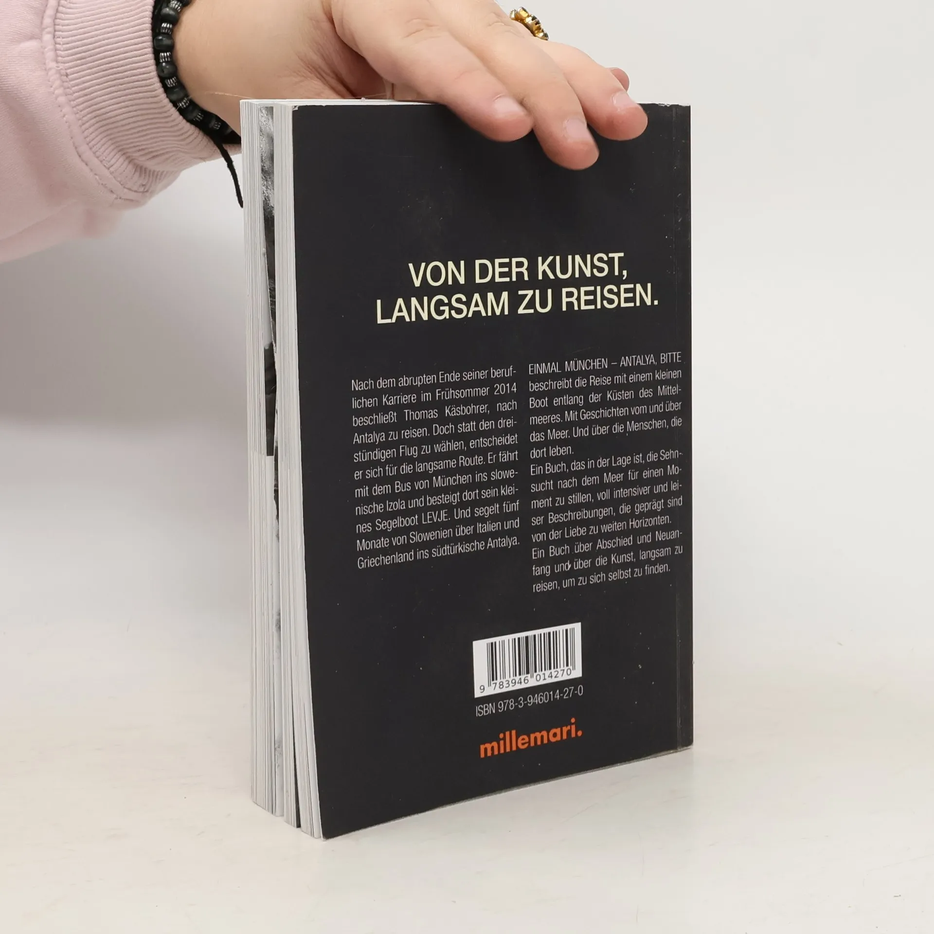 Nach dem abrupten Ende seiner beruflichen Karriere im Frühsommer 2014 beschließt Thomas Käsbohrer, nach Antalya zu reisen. Doch statt den dreistündigen Flug zu wählen, entscheidet er sich für die langsame Route. Er fährt mit dem Bus von München ins slowenische Izola und besteigt dort sein kleines Segelboot LEVJE. Und segelt fünf Monate von Slowenien über Italien und Griechenland ins südtürkische Antalya. EINMAL MÜNCHEN – ANTALYA, BITTE beschreibt die Reise mit einem kleinen Boot entlang der Küsten des Mittelmeeres. Mit Geschichten vom und über das Meer. Und über die Menschen, die dort leben. Ein Buch, das in der Lage ist, die Sehnsucht nach dem Meer für einen Moment zu stillen, voll intensiver und leiser Beschreibungen, die geprägt sind von der Liebe zu weiten Horizonten. Ein Buch über Abschied und Neuanfang und über die Kunst, langsam zu reisen, um zu sich selbst zu finden.