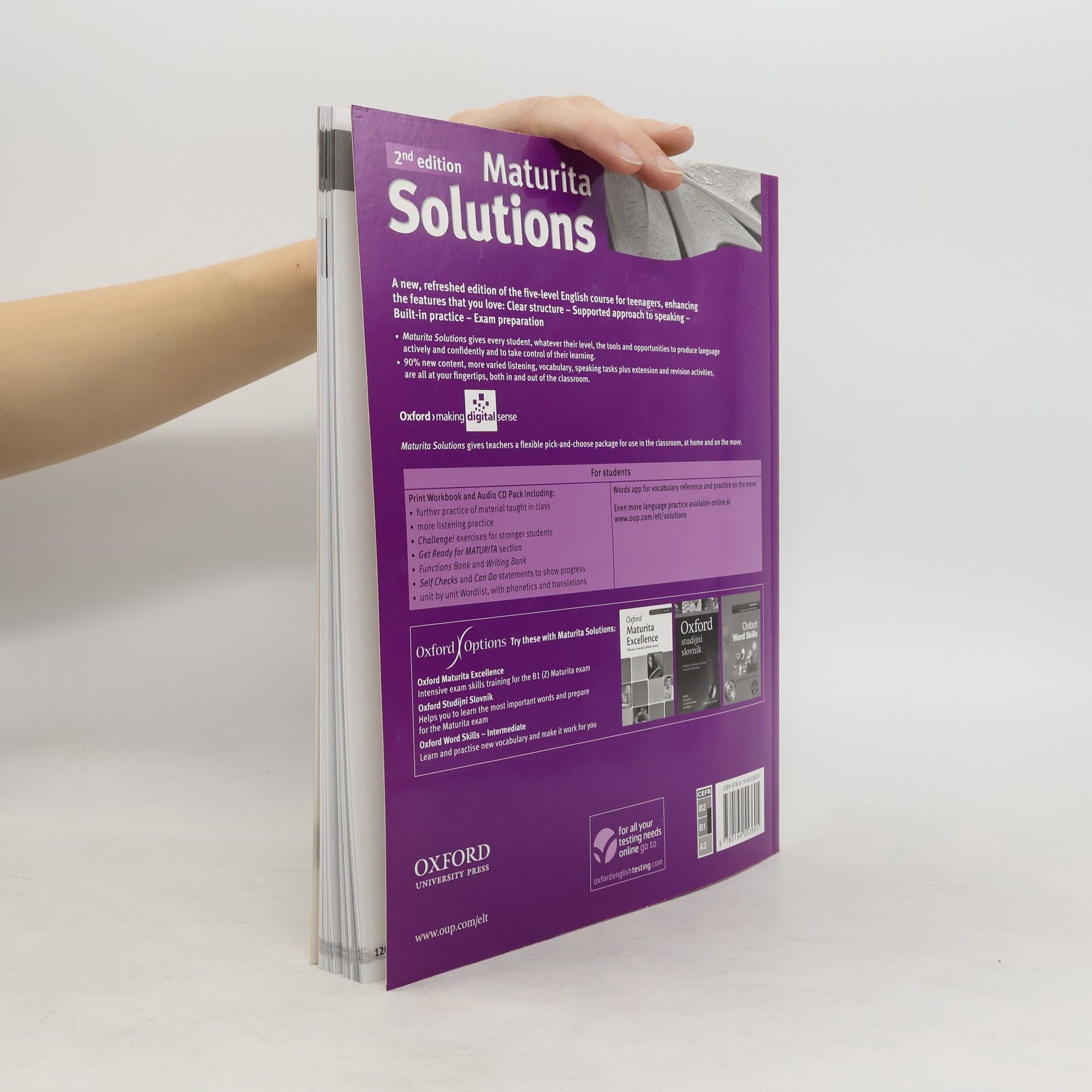 Popis: - zcela nový pětidílný kurz určený pro studenty českých středních škol, kteří se připravují na NOVOU MATURITU z anglického jazyka - přehledná, jednoduchá stavba lekce: jedna stránka = jedna 45minutová hodina probírá a procvičuje maturitní témata - GET READY FOR MATURITA - připravuje na všechny části a na obě úrovně NOVÉ MATURITY - v metodické příručce je mnoho kopírovatelných doplňkových materiálů a nápadů pro mixed-ability classes Description: A five-level general English course for 14-19 year-olds, who are also preparing for the school-leaving exam. Overview The clear structure and step-by-step approach to communication provides supported language and skills training to get students speaking confidently. Key features * Every lesson has an outcome: the "I can" objective in each lesson gives students an immediate sense of achievement. * Clear lessons mean Solutions is quick to prepare and easy to use. * All school-leaving exam topics and task-types are covered in Solut