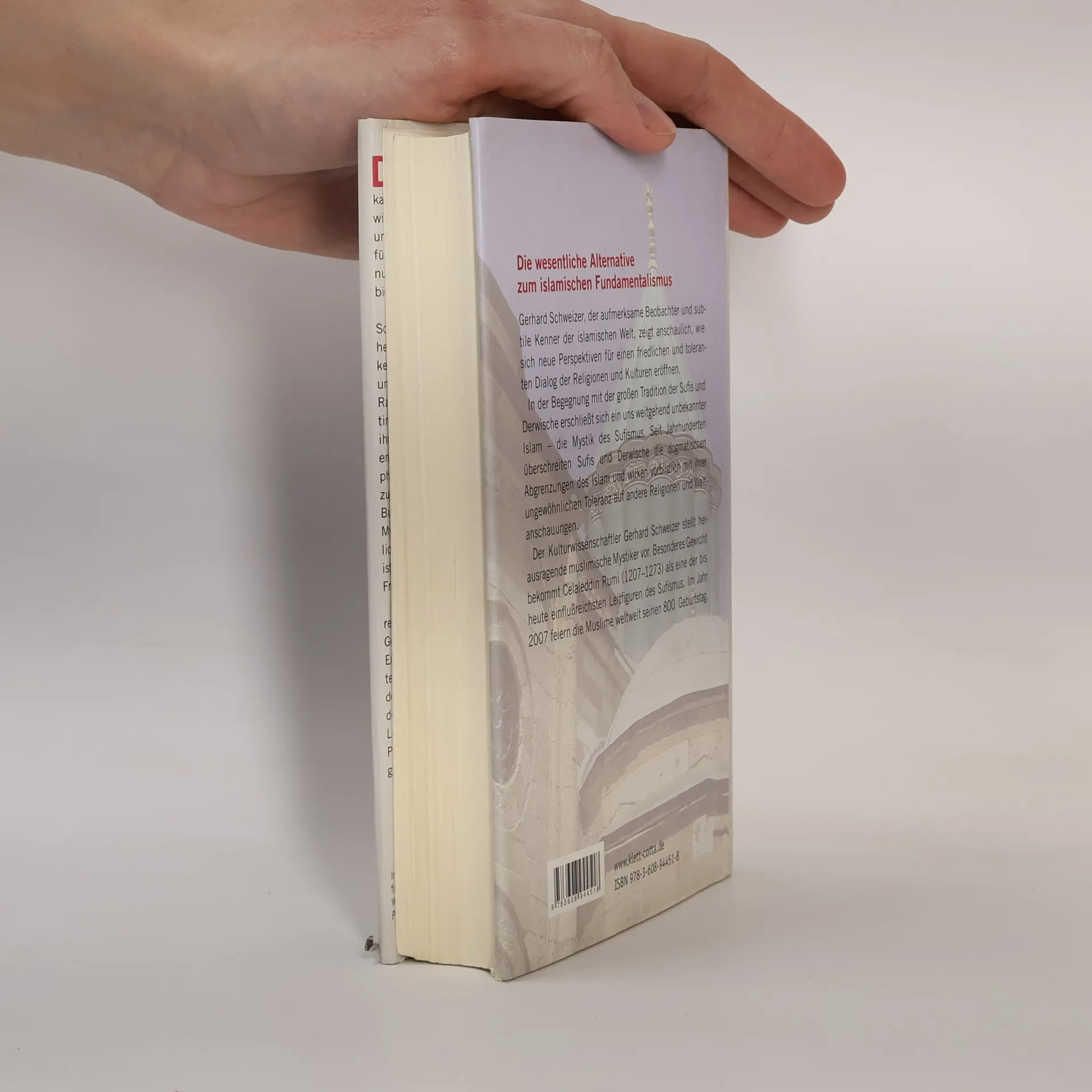 Dem Westen sind viele islamische Traditionen wie der Sufismus unbekannt und kaum vertraut. Er kennt somit den friedlichen Islam und seine Geschichte nicht, also auch nicht die Chancen auf einen Ausgleich und ein Miteinander zwischen den Weltreligionen und Kulturen. Der Kulturwissenschaftler Gerhard Schweizer stellt Leben und Werk herausragender muslimischer Mystiker vor. Er zeigt ihre geistigen Verbindungen zu Christentum, Hinduismus und Buddhismus, entreißt eine große islamische Tradition dem Vergessen und vermittelt einen friedlichen Islam. Gerade der Sufismus überwindet begrenzte religiöse Sichtweisen und praktiziert Gelassenheit gegenüber anderen Erfahrungen und Kulturen. Dadurch wurde er zu einer ständigen Herausforderung für den Dogmatismus und Fundamentalismus im Islam. Exemplarisch wird Celaleddin Rumi 1207 – 1273) als religiöse Leitfigur vorgestellt. Seine Wirkung reicht bis in die Gegenwart und wird einen Höhepunkt im Jahr 2007 erleben, wenn die gesamte islamische Welt seinen 800. Geburtstag feiert. Gerhard Schweizer ist einer der führenden Experten für die Analyse der Kulturkonflikte zwischen Abendland und Orient und gilt als ausgewiesener Kenner der islamischen Welt.