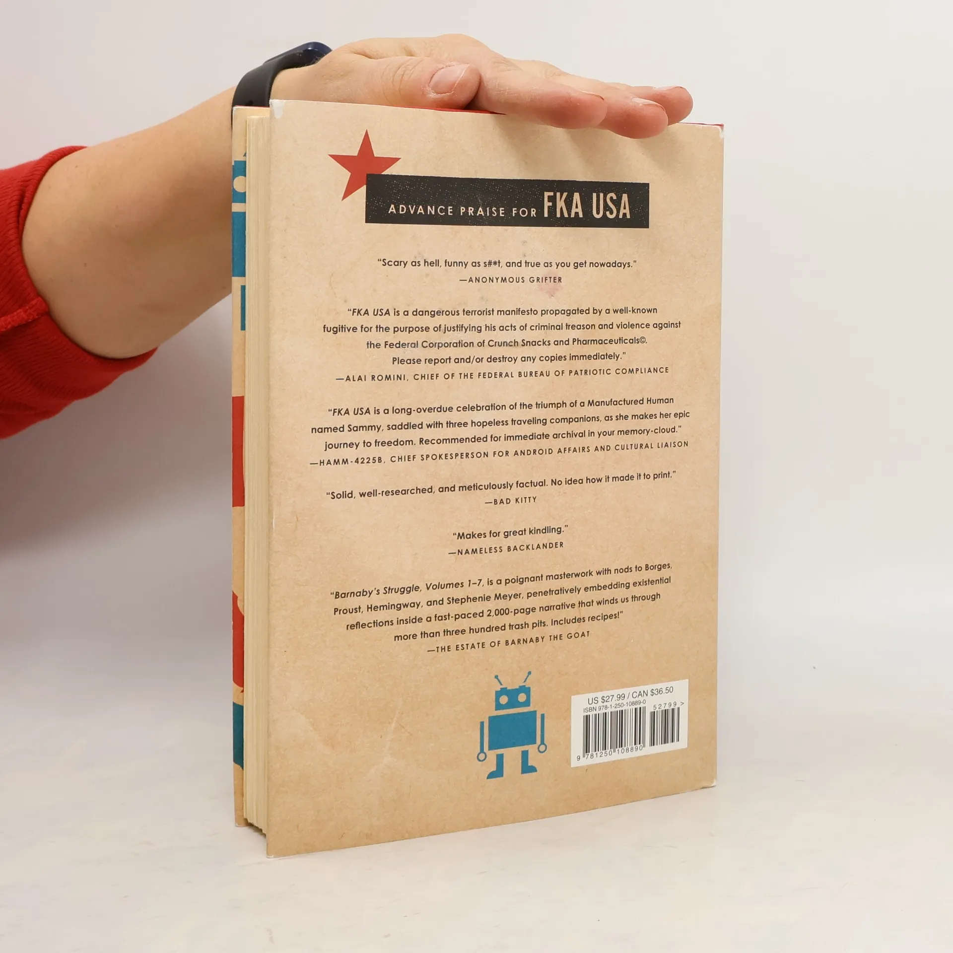 With echoes of The Hitchhiker's Guide to the Galaxy, Underground Airlines, and The Wizard of Oz, FKA USA is a dystopian tale that is a masterwork of ambition and imagination.