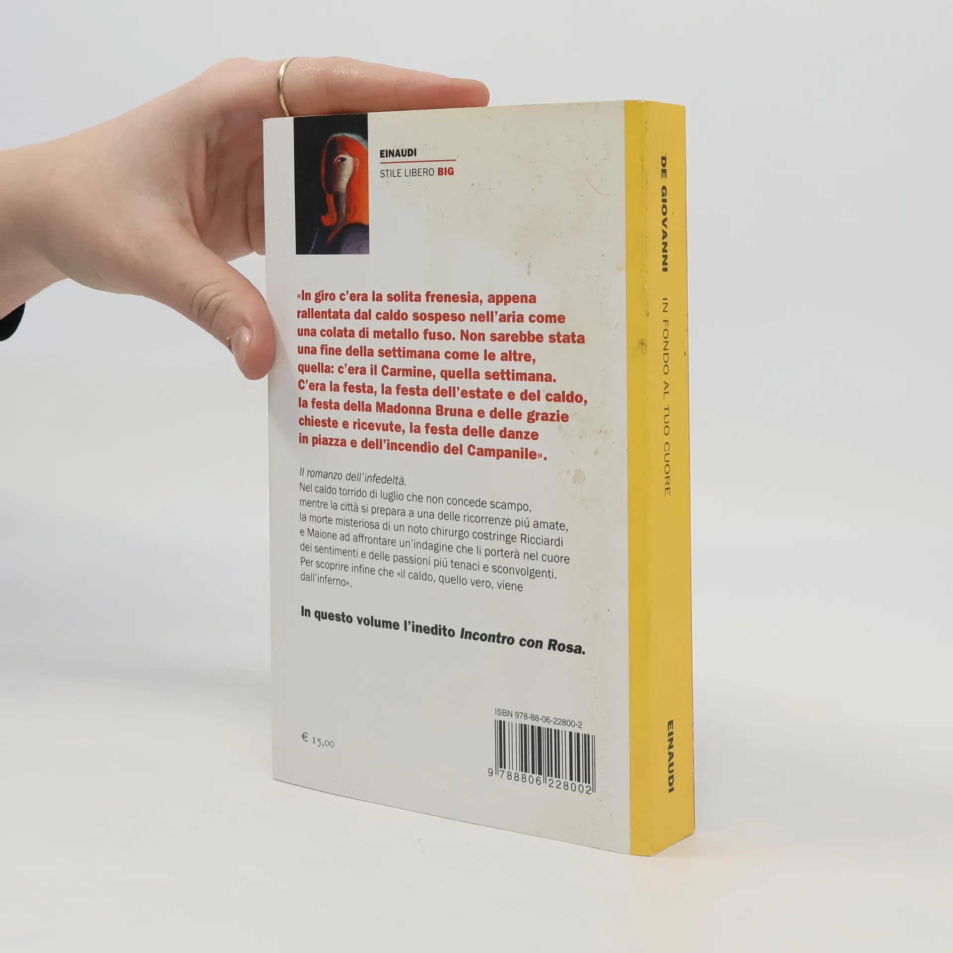 Il romanzo dell'infedeltà. Nel caldo torrido di luglio che non concede scampo, mentre la città si prepara a una delle ricorrenze piú amate, la morte misteriosa di un noto chirurgo costringe Ricciardi e Maione ad affrontare un'indagine che li porterà nel cuore dei sentimenti e delle passioni più tenaci e sconvolgenti. Per scoprire infine che «il caldo, quello vero, viene dall'inferno». *** In nuova edizione l'intero ciclo del commissario Ricciardi. In ogni volume, in postfazione, l'autore dialoga con uno dei suoi personaggi: lo stesso Ricciardi, che ha il dono, o la condanna, di vedere i morti di morte violenta e di percepirne l'ultimo pensiero; il brigadiere Maione, suo compagno di avventure; Bambinella, il femminiello che sa tutte le voci della città; il razionale, umanissimo dottor Modo; Enrica, l'amore impossibile; Livia, dall'inquietante, avvolgente bellezza; Rosa, che per tutta la vita ha avuto cura di lui come una madre.
