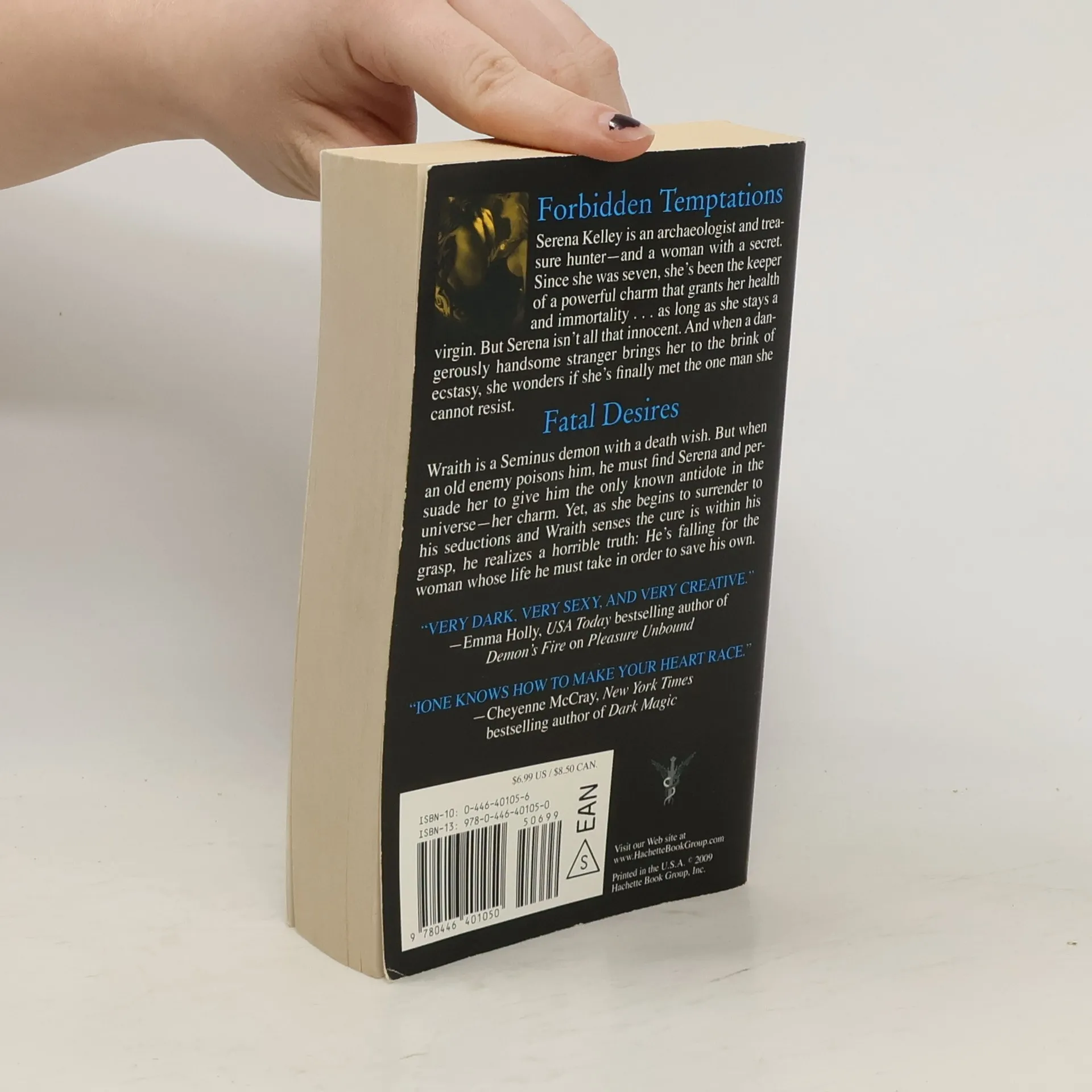 FORBIDDEN TEMPTATIONS Serena Kelley is an archaeologist and treasure hunter-and a woman with a secret. Since she was seven, she's been the keeper of a powerful charm that grants her health and immortality . . . as long as she stays a virgin. But Serena isn't all that innocent. And when a dangerously handsome stranger brings her to the brink of ecstasy, she wonders if she's finally met the one man she cannot resist. FATAL DESIRES Wraith is a Seminus demon with a death wish. But when an old enemy poisons him, he must find Serena and persuade her to give him the only known antidote in the universe-her charm. Yet, as she begins to surrender to his seductions and Wraith senses the cure is within his grasp, he realizes a horrible truth: He's falling for the woman whose life he must take in order to save his own.