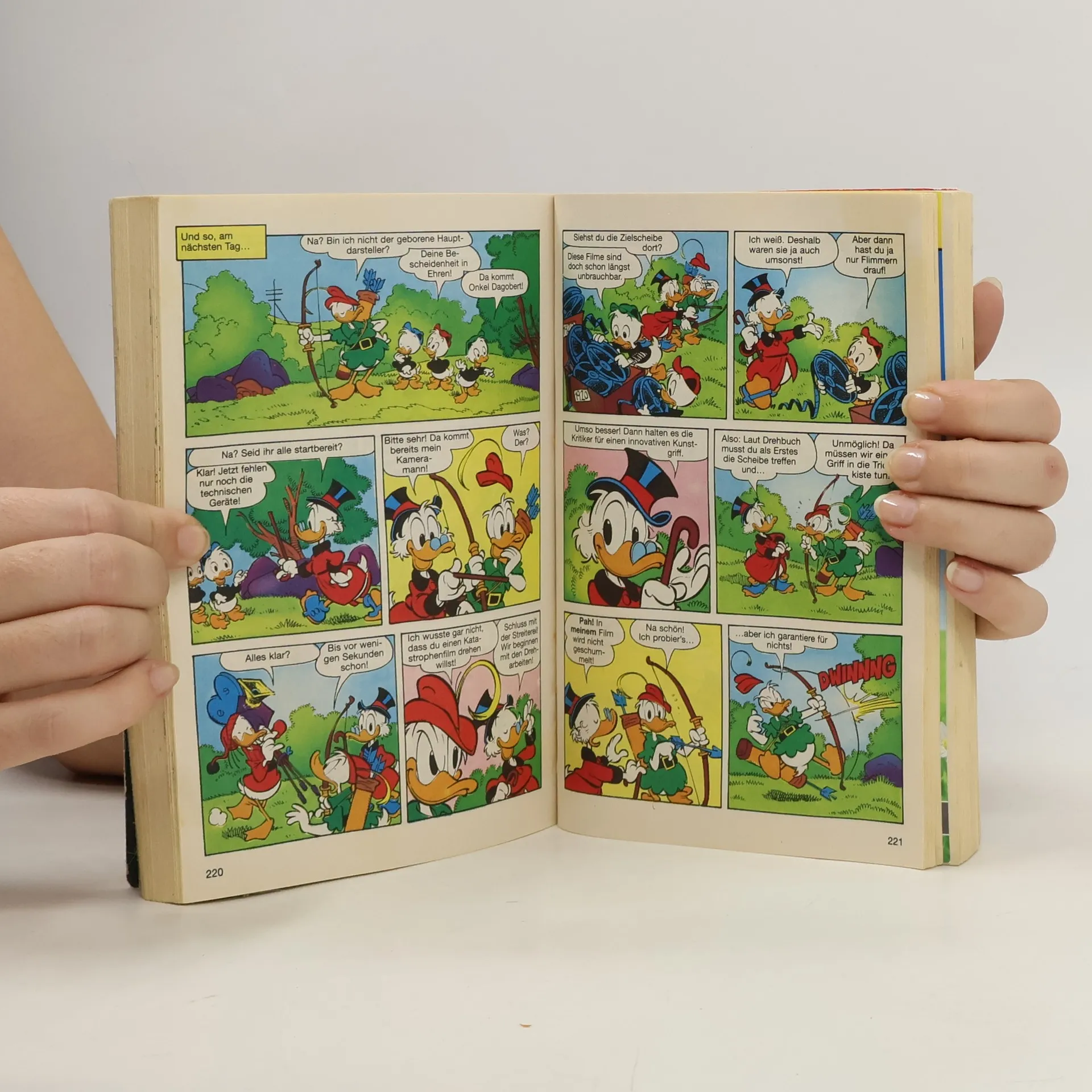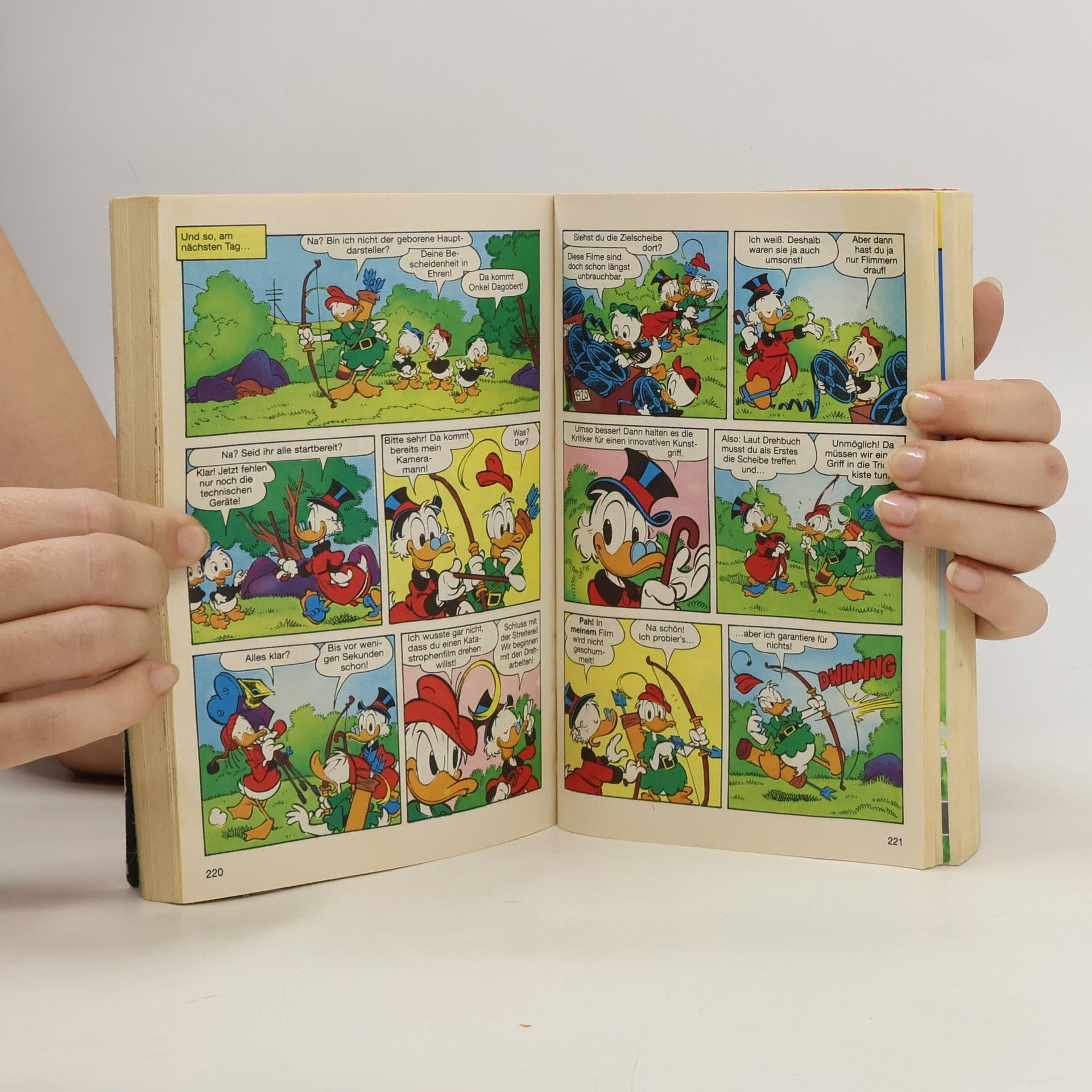 Wer bei „Pfeil und Bogen“ zuvörderst an Indianer denkt, riskiert, bei seinem nächsten Waldspaziergang durch den Sherwood Forest von Herrschaften in grünen Wämsern mit vorgehaltenem Langbogen nachdrücklich belehrt zu werden. Denn wer ist mit besagter Waffe der wohl Berühmteste aller Kunstschützen, na? Richtig, Robin Hood! Was das mit Entenhausen zu tun hat? Diese Frage beantwortet sich ja wohl durch die bloße Existenz dieses Buches von selbst. Freuen Sie sich auf 13 mystische und geheimnisumwitterte Abenteuer! Davon sogar 5 deutsche Erstveröffentlichungen.
