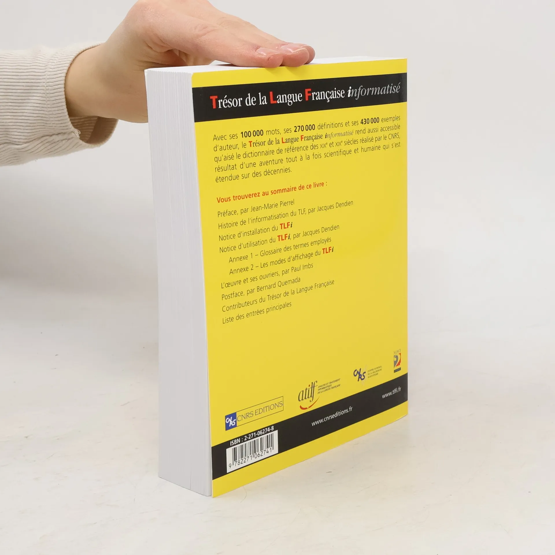 L'intégralité des 16 volumes du dictionnaire de la langue française le plus complet par son nombre d'entrées et sa précision linguistique. Pour chaque mot : • ses définitions, • ses conditions d'emploi, • de nombreux exemples d'usage issus de la littérature, • son histoire, • son étymologie. Des modes de recherche adaptés à chaque usage : • La recherche simple d'un mot • Correction orthographique automatique, • Mise en évidence de divers types d'information : définition, usage, exemples, etc. • La consultation transversale • Par exemple : recherche des mots d'origine espagnole, des adjectifs en -able... • La requête complexe • Par exemple : recherche des verbes traitant du maniement des voiles en marine. La recherche directe d'un mot à partir de n'importe quel document Microsoft Internet Explorer ou Word et une aide pour la réalisation de mots croisés...