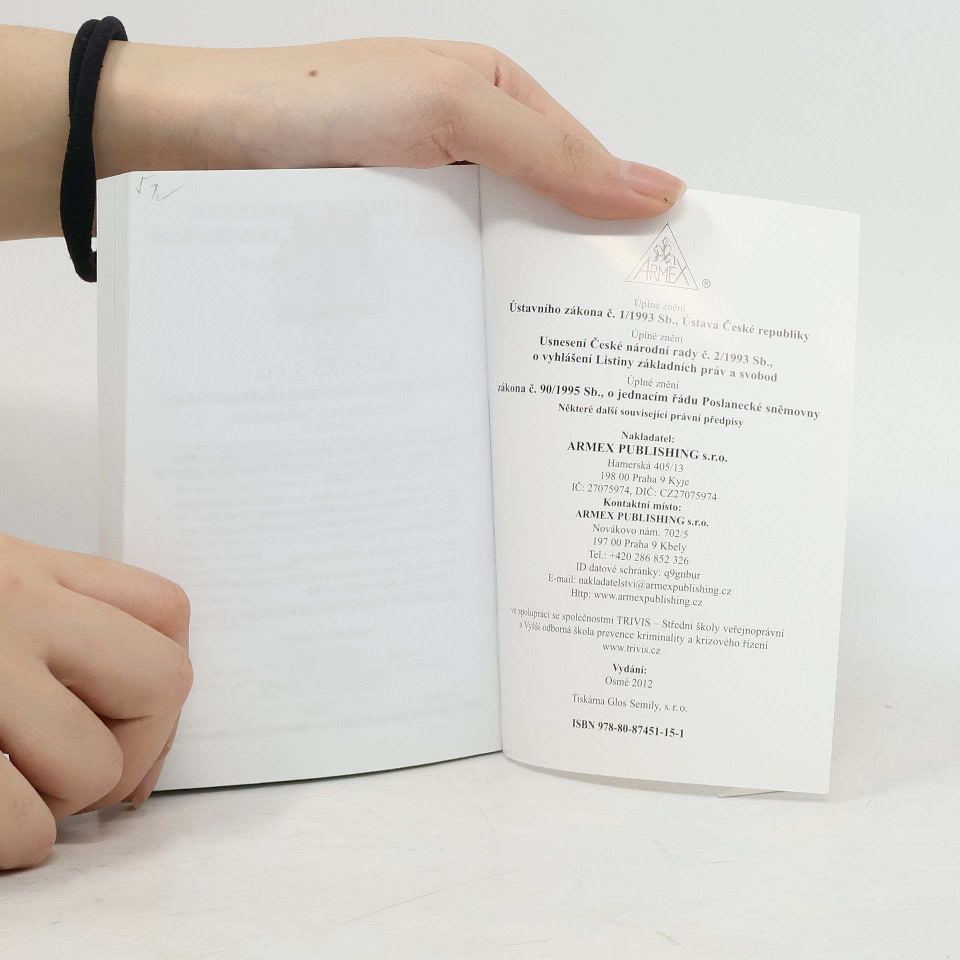 Úplné znění Ústavního zákona České národní rady č. 1/1993 Sb., Ústava České republiky, Česko, Česká národní rada, TRIVIS - Střední škola veřejnoprávní a Vyšší odborná škola prevence kriminality a krizového řízení (Praha)