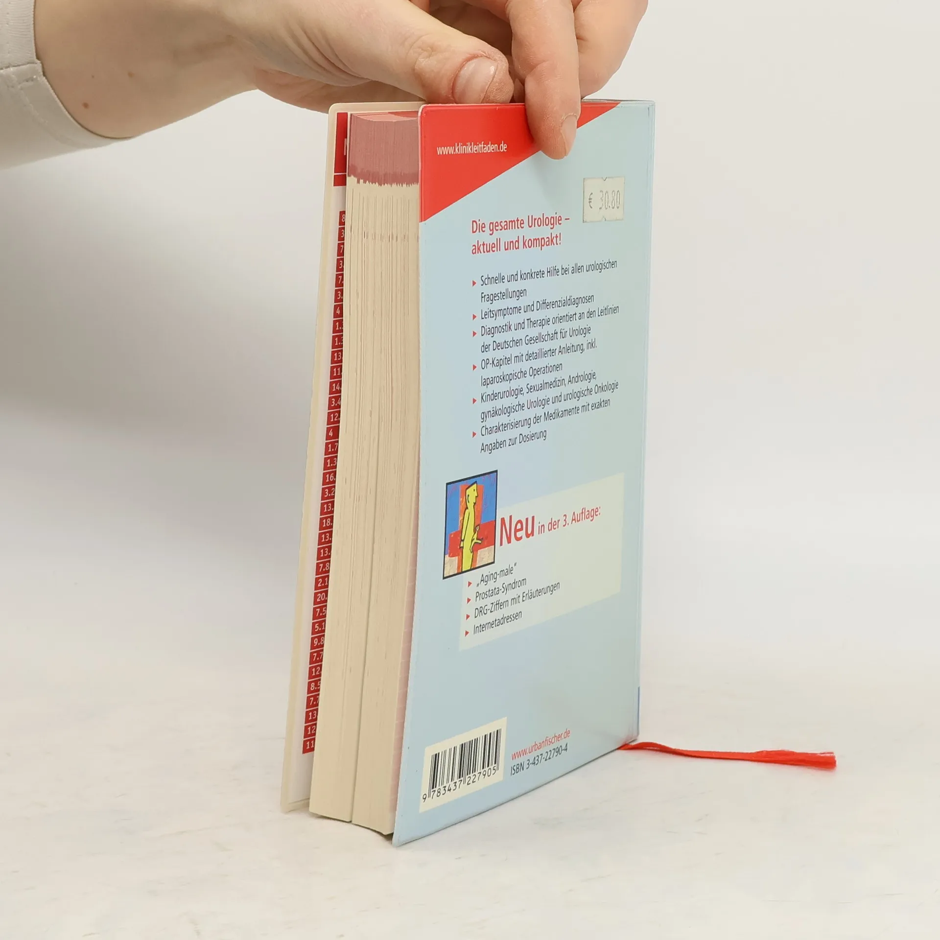 Gliederung der Kapitel: Tipps für die Stationsarbeit, Ärztliche Arbeitstechniken, Leitsymptome, Internistische Probleme, Infektionen, Sexually Transmitted Diseases, Niere, Nebenniere, Blase, Prostata, Urethra, Hoden, Penis, Kinderurologie, Sexualmedizin, Urolithiasis, Proktologie, Praktische Onkologie, Der operative Eingriff, Operationen, Probleme der Arzneitherapie NEU: Kapitel Psychosomatik in der Urologie (HL) Klinikleitfaden Urologie Eichenauer/Vanherpe/Sandmann (copy) „ Schnelle und konkrete Hilfe bei allen urologischen Fragestellungen “ Leitsymptome und Differenzialdiagnosen „ Diagnostik und Therapie orientiert an den Leitlinien der Deutschen Gesellschaft für Urologie “ OP-Kapitel mit detaillierter Anleitung, inkl. laparoskopische Operationen „ Kinderurologie, Sexualmedizin, Andrologie, gynäkologische Urologie und urologische Onkologie “ Charakterisierung der Medikamente mit exakten Angaben zur Dosierung Neu in der 3. Auflage: „ “Aging-male„ “ Prostata-Syndrom " DRG-Ziffern mit Erläuterungen
