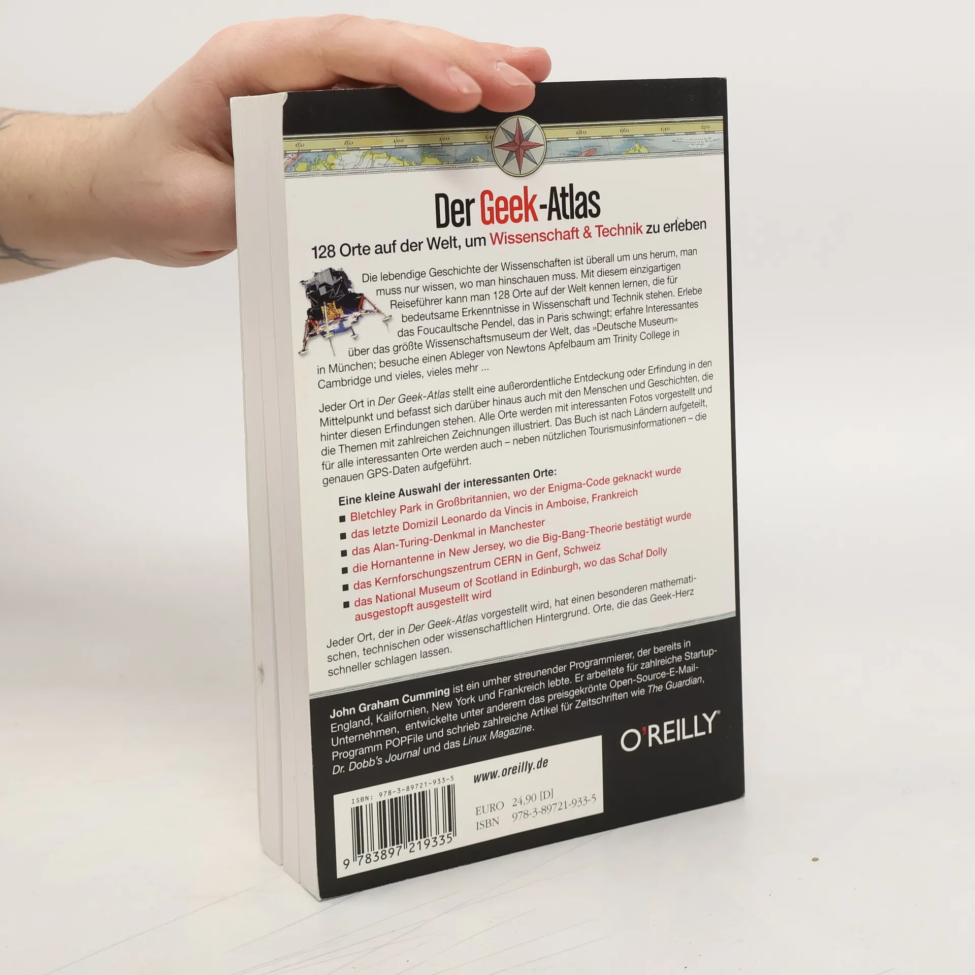 Die lebendige Geschichte der Wissenschaften ist uberall um uns herum, man muss nur wissen, wo man hinschauen muss. Mit diesem einzigartigen Reisefuhrer kann man 128 Orte auf der Welt kennen lernen, die fur bedeutsame Ereignisse in Wissenschaft und Technik stehen. Erlebe das Foucaultsches Pendel, das in Paris schwingt; erfahre Interessantes uber das groste Wissenschaftsmuseum der Welt, das "Deutsche Museum" in Munchen; besuche einen Ableger des Newtons Apfelbaums am Trinity College in Cambridge und vieles, vieles mehr... Jeder Ort in Der Geek-Atlas stellt eine auerordentliche Entdeckung oder Erfindung in den Mittelpunkt und befasst sich daruber hinaus auch mit den Menschen und Geschichten, die hinter diesen Erfindungen stehen. Alle Orte werden mit interessanten Fotos vorgestellt und die Themen mit zahlreichen Zeichnungen illustriert. Das Buch ist nach Landern aufgeteilt, fur alle interessanten Orte werden auch - neben nutzlichen Tourismusinformationen - die genauen GPS-Daten aufgefuhrt.