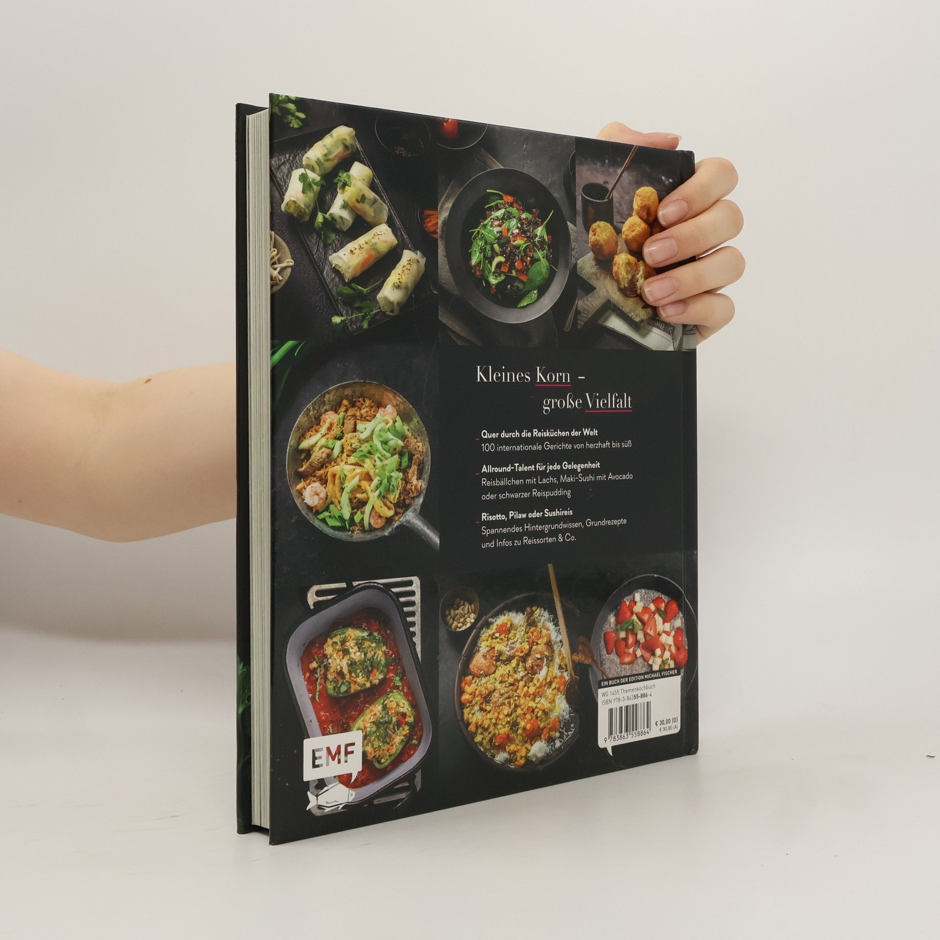 Kleines Korn – große Vielfalt! Reis ist weltweit eines der wichtigsten Getreide und für mehr als die Hälfte der Weltbevölkerung Grundnahrungsmittel. Kein Wunder: Reis ist ein richtiges Allround-Talent, besteht aus hochwertigen Eiweiß, Spurenelementen und verschiedenen Mineral- und Ballaststoffen. Auch in der internationalen Küche ist Reis vielseitig einsetzbar - die 100 spannenden Gerichte aus Asien, der Karibik oder dem mediterranen Raum spiegeln diese kulinarische Vielfalt wider. Spannend und abwechslungsreich werden Hintergrundwissen zu Reissorten, Anbau Ernte und Zubereitungsmethoden und die positiven Auswirkungen von Reis erklärt. Hilfreiche Tipps und Tricks, mehr als 10 praktische Grundrezepte (Sushireis, bunter Gemüsereis oder Risotto) und 100 vielfältige Reisrezepte von deftig bis süß runden das Ganze ab. Egal, ob Dattelreis mit Harissa, Fenchelreis-Bratlinge, Hähnchenkeulen im Reisfeld, Maki-Sushi mit Avocado, Reiswok mit Ananas, Tintenfisch-Risotto oder Safranreis mit Früchten - hier kommen alle Reisliebhaber, und die, die es mal werden wollen voll auf ihre Kosten!