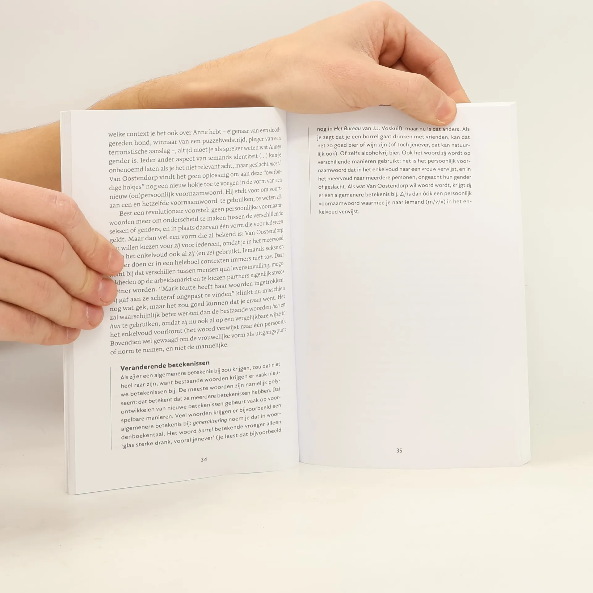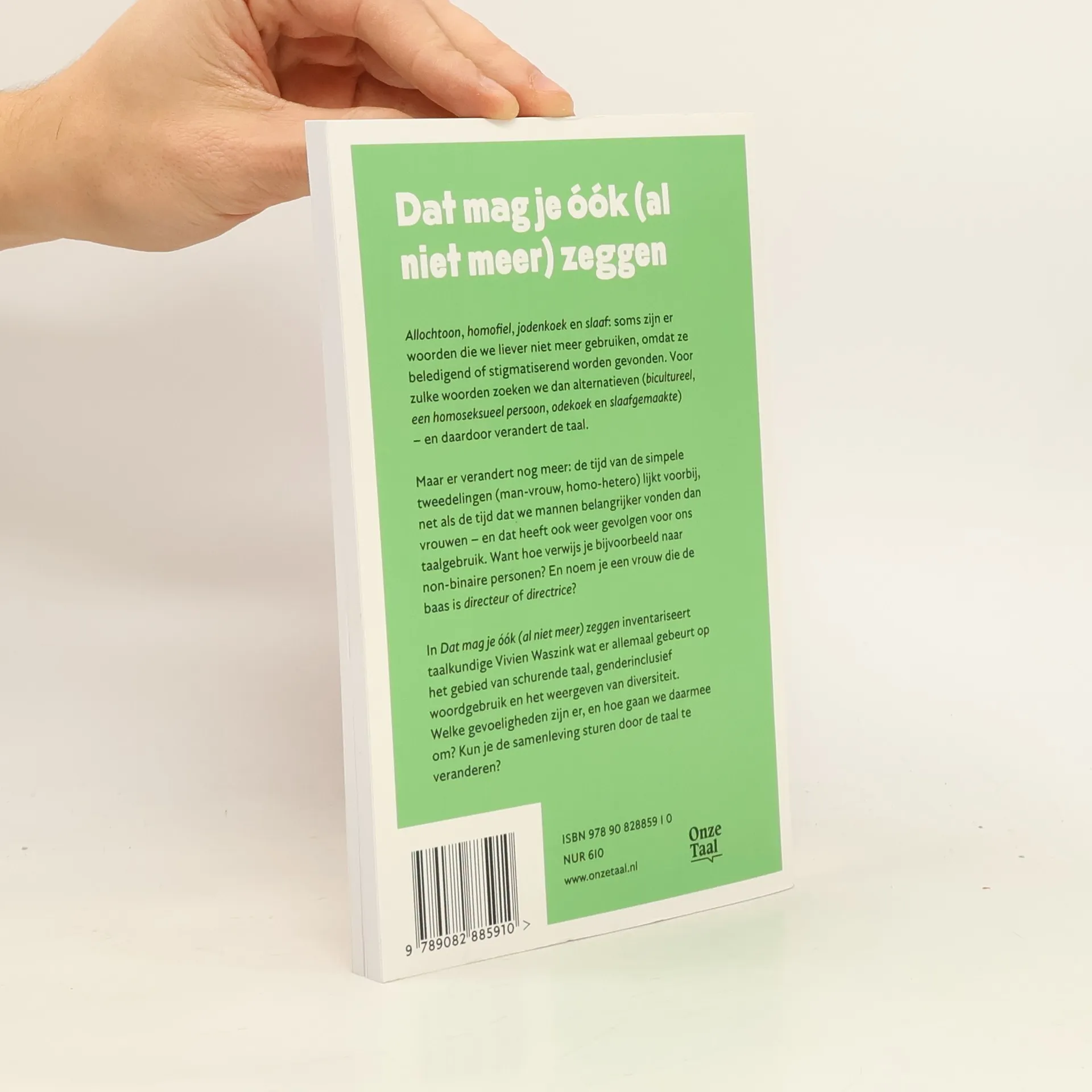 Een beschouwing op inclusief taalgebruik en de moderne samenleving. Veel nieuwe woorden zijn erop gericht om eenvoudige tweedelingen als man-vrouw te doorbreken. Vivien Waszink bespreekt wat voor woorden dit zijn, hoe ze ontstaan en hoe ze gebruikt worden. Daarbij gaat ze in op de gevoeligheden die hieraan ten grondslag liggen en of de samenleving gestuurd kan worden door middel van taal. In onderzoekende stijl geschreven. Vivien Waszink is een Nederlandse auteur en taalkundige.