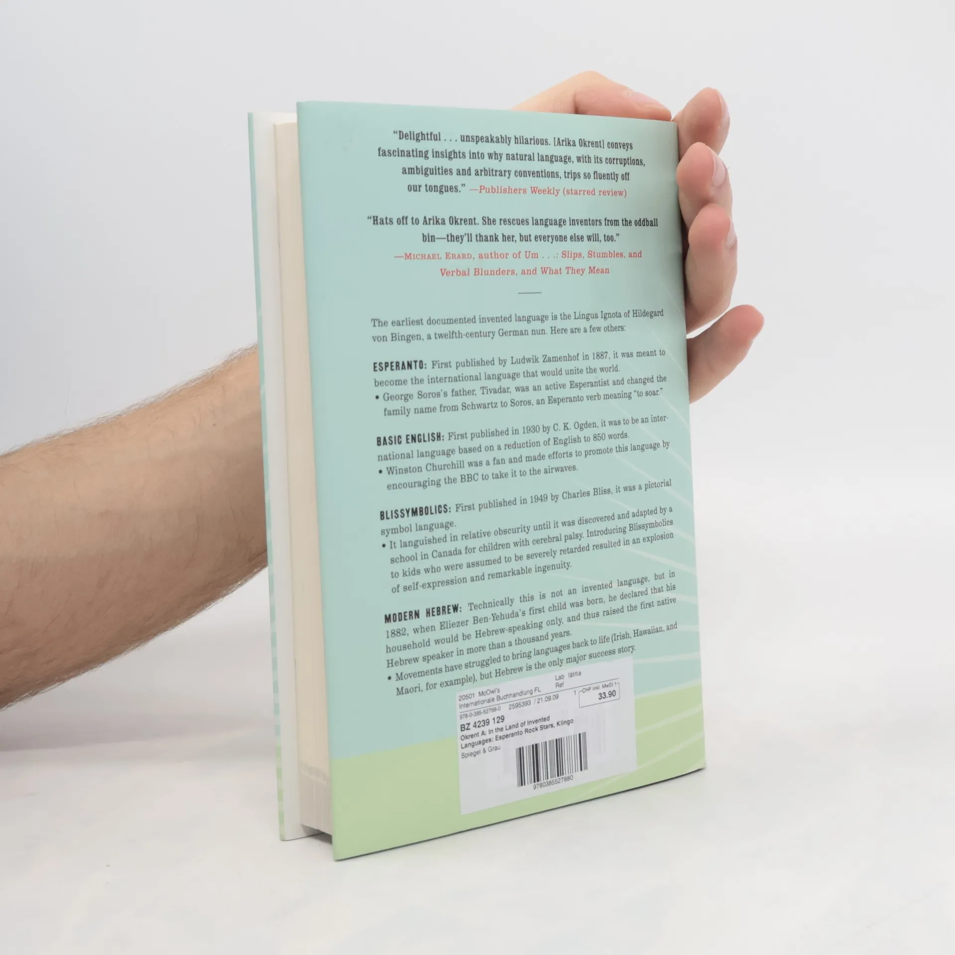 Just about everyone has heard of Esperanto, which was nothing less than one man's attempt to bring about world peace by means of linguistic solidarity. And every Star Trek fan knows about Klingon, which was nothing more than a television show's attempt to create a tough-sounding language befitting a warrior race with ridged foreheads. But few people have heard of Babm, Blissymbolics, and the nearly nine hundred other invented languages that represent the hard work, high hopes, and full-blown delusions of so many misguided souls over the centuries. In In The Land of Invented Languages, author Arika Okrent tells the fascinating and highly entertaining history of man's enduring quest to build a better language. Peopled with charming eccentrics and exasperating megalomaniacs, the land of invented languages is a place where you can recite the Lord's Prayer in John Wilkins's Philosophical Language, say your wedding vows in Loglan, and read Alice's Adventures in Wonderland in Lojban. A truly original new addition to the booming category of language books, In The Land of Invented Languages will be a must-have on the shelves of all word freaks, grammar geeks, and plain old language lovers.